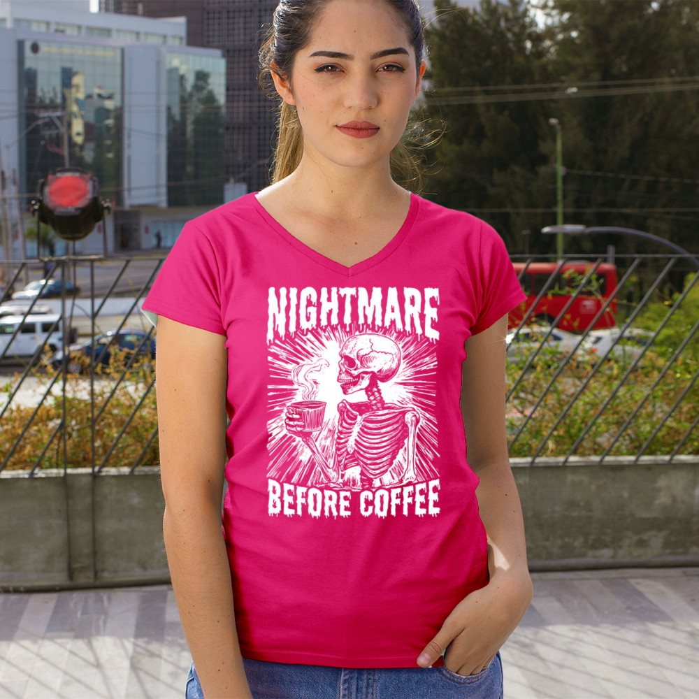 Show off your love for coffee with this quirky "Nightmare Before Coffee" skeleton design, blending humor and gothic style for caffeine lovers.