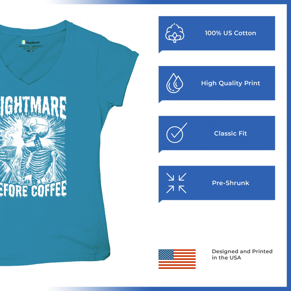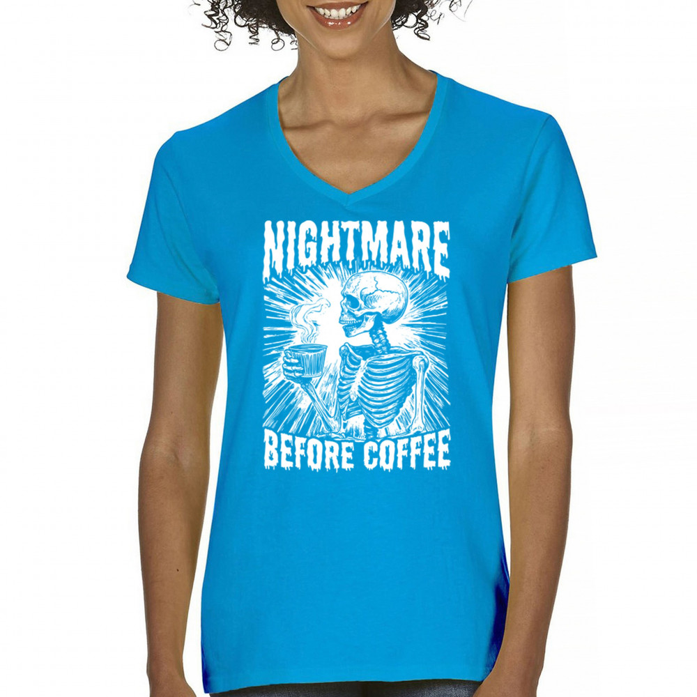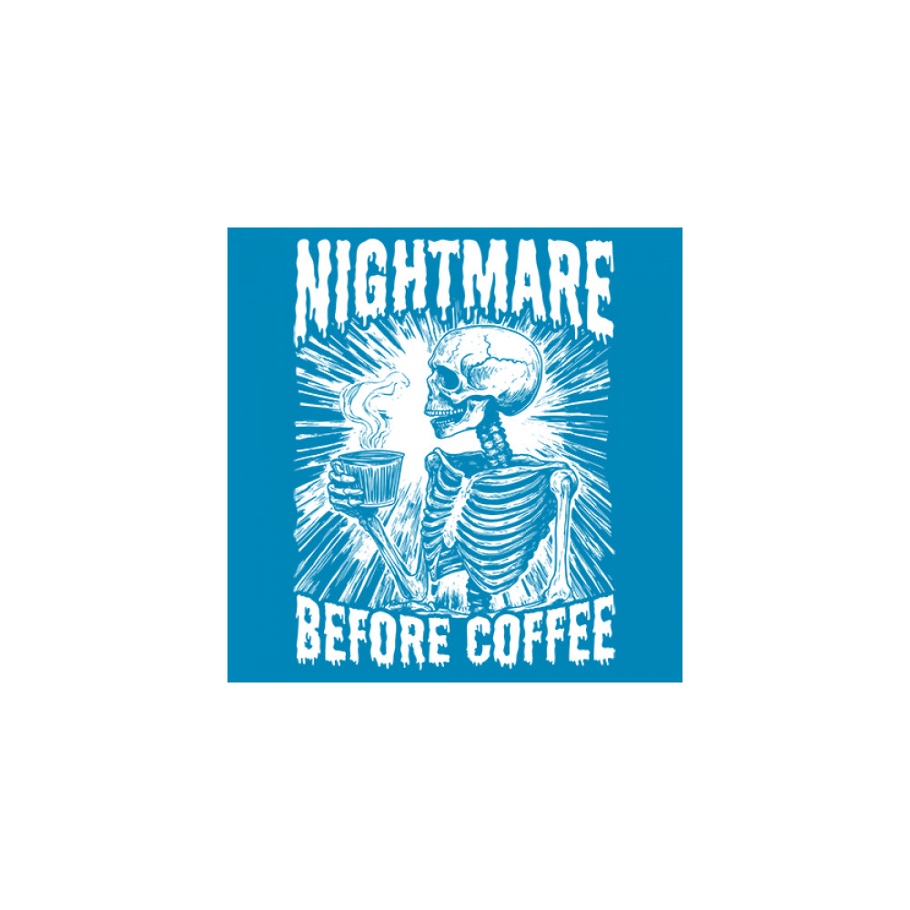 Show off your love for coffee with this quirky "Nightmare Before Coffee" skeleton design, blending humor and gothic style for caffeine lovers.