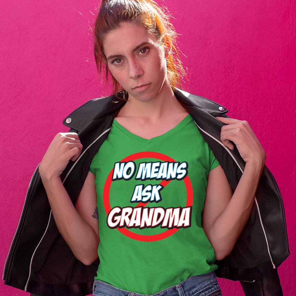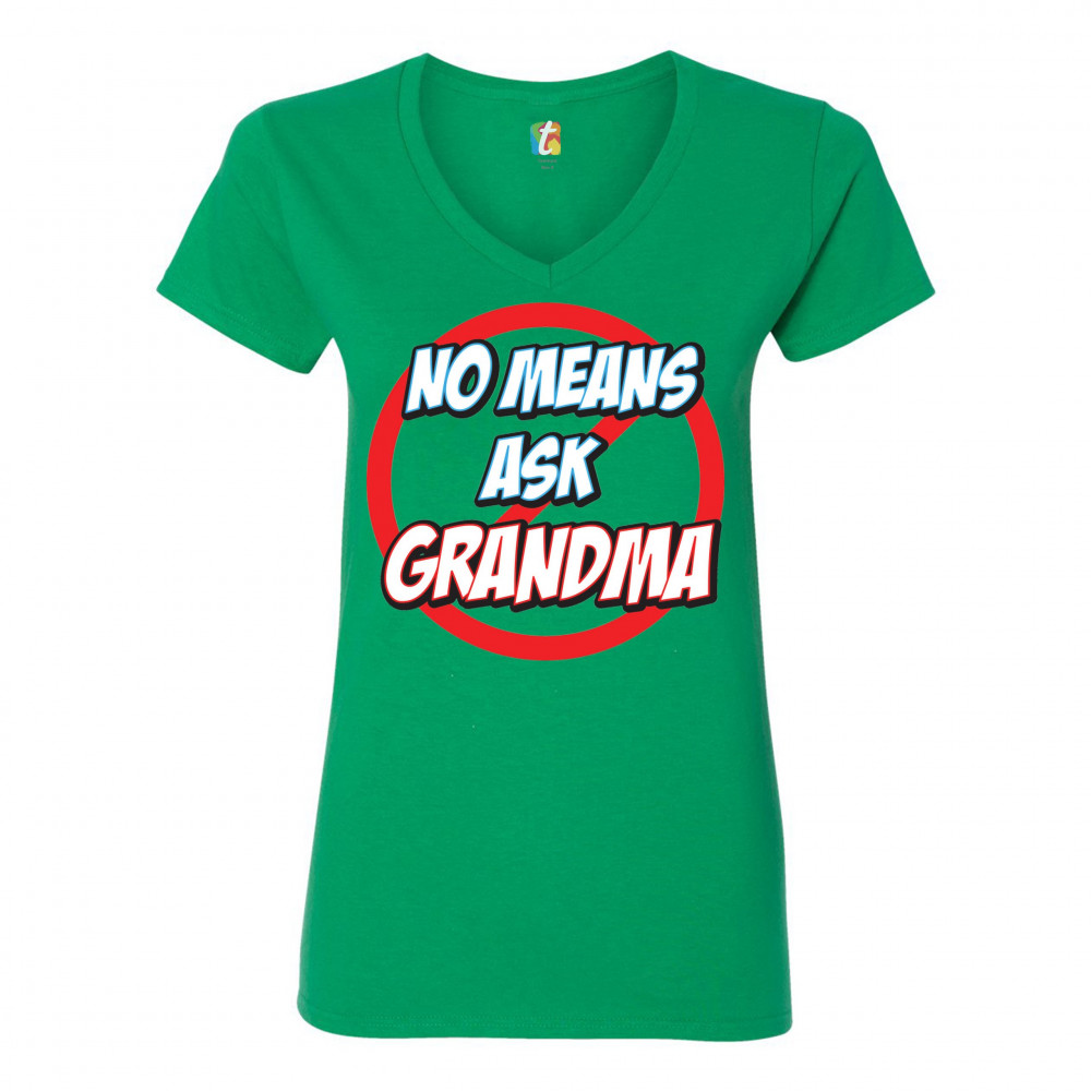 NO MEANS ASK GRANDMA women's v-neck t-shirt granny mother's day funny nana tee green
