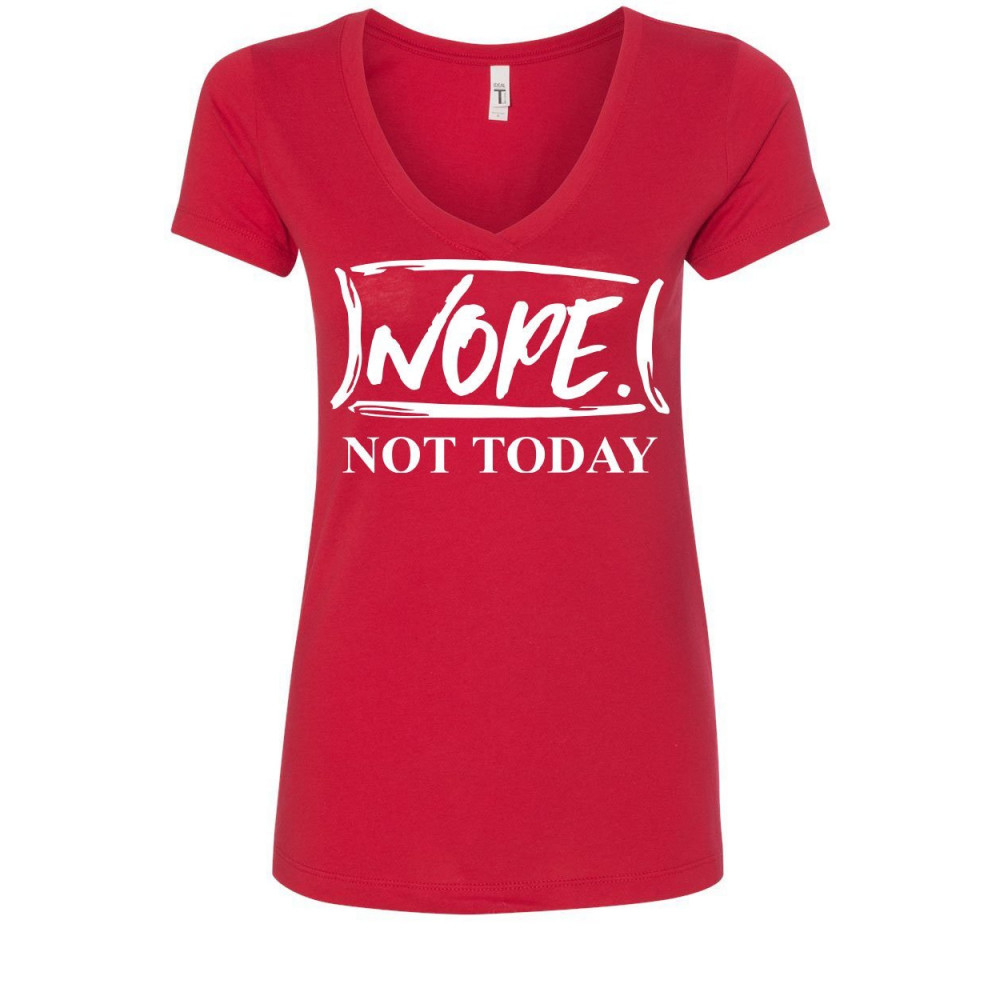 NOPE NOT TODAY women's v-neck t-shirt procrastination lazy funny college humor red