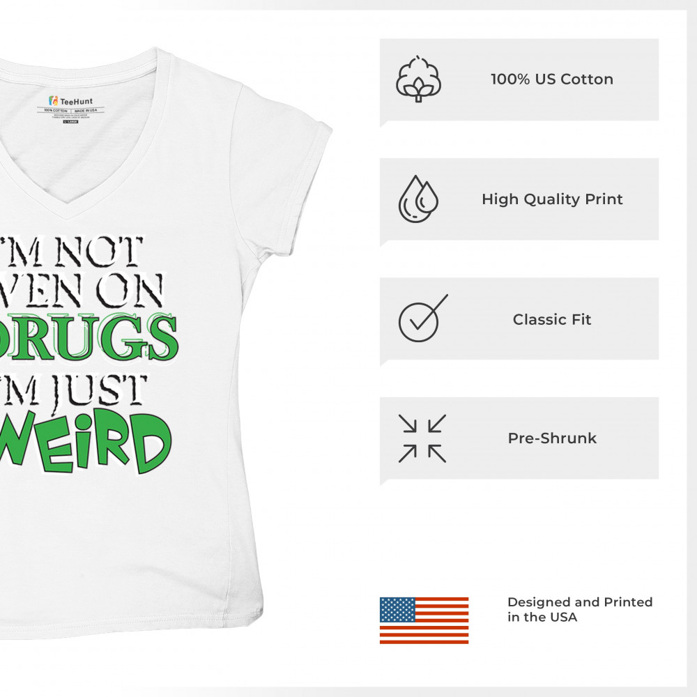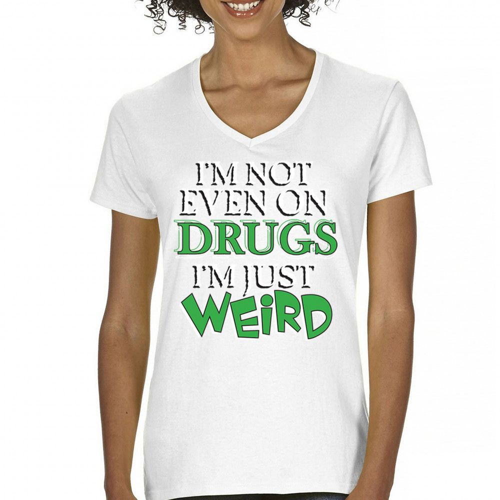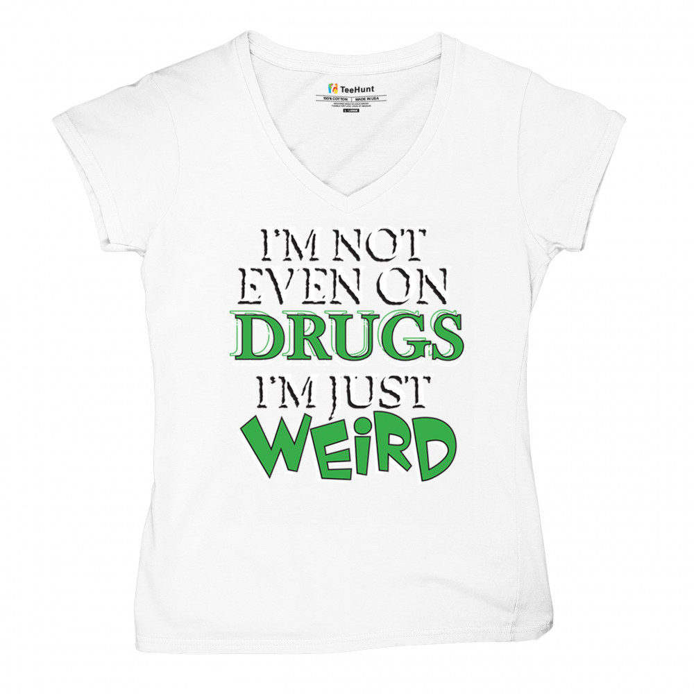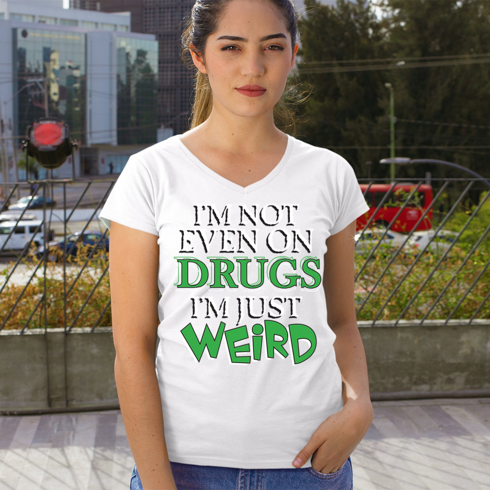 Bold weird design for introverts and quirky minds. Says “I'm not even on drugs I'm just weirdâ€â€”perfect for awkward humor and loud energy.