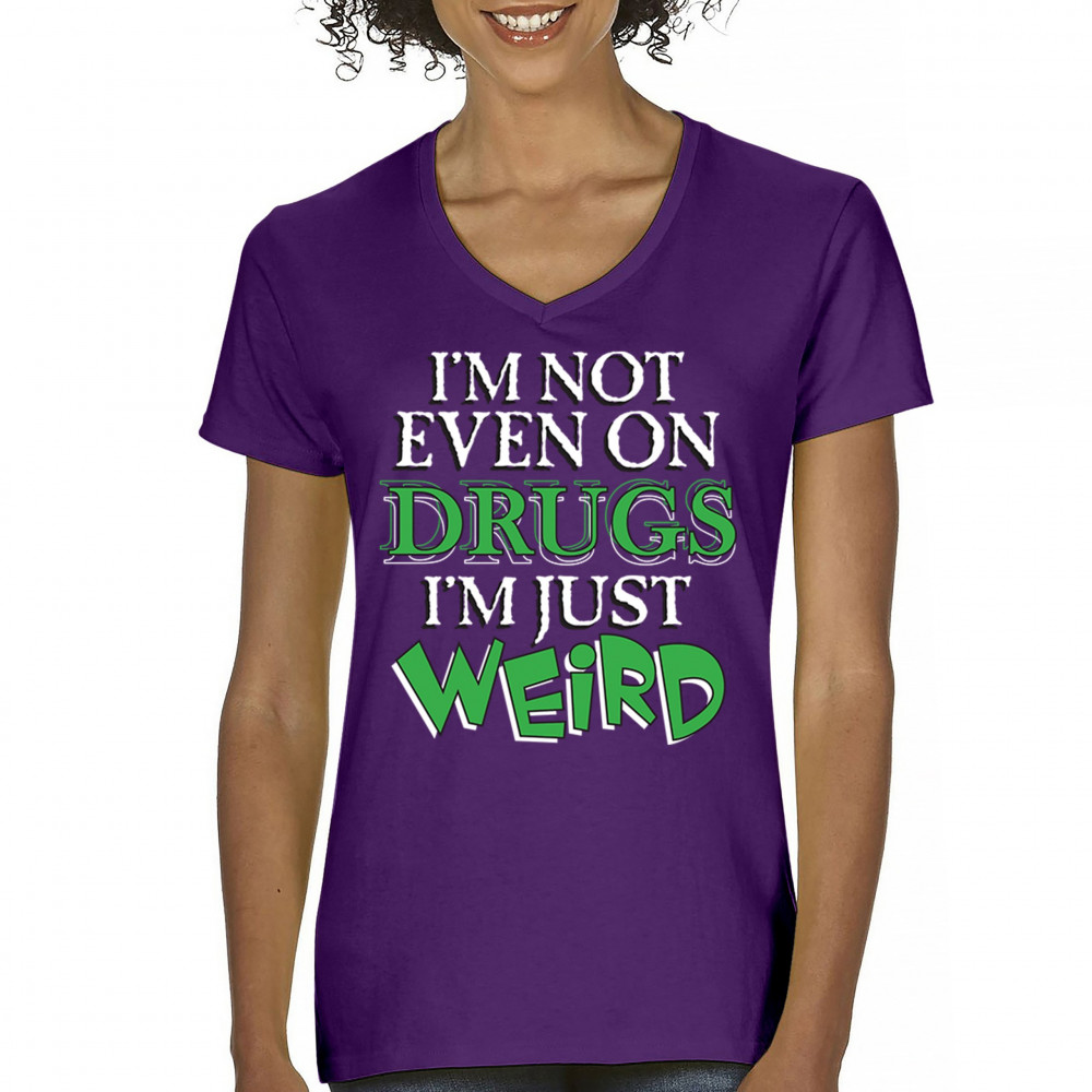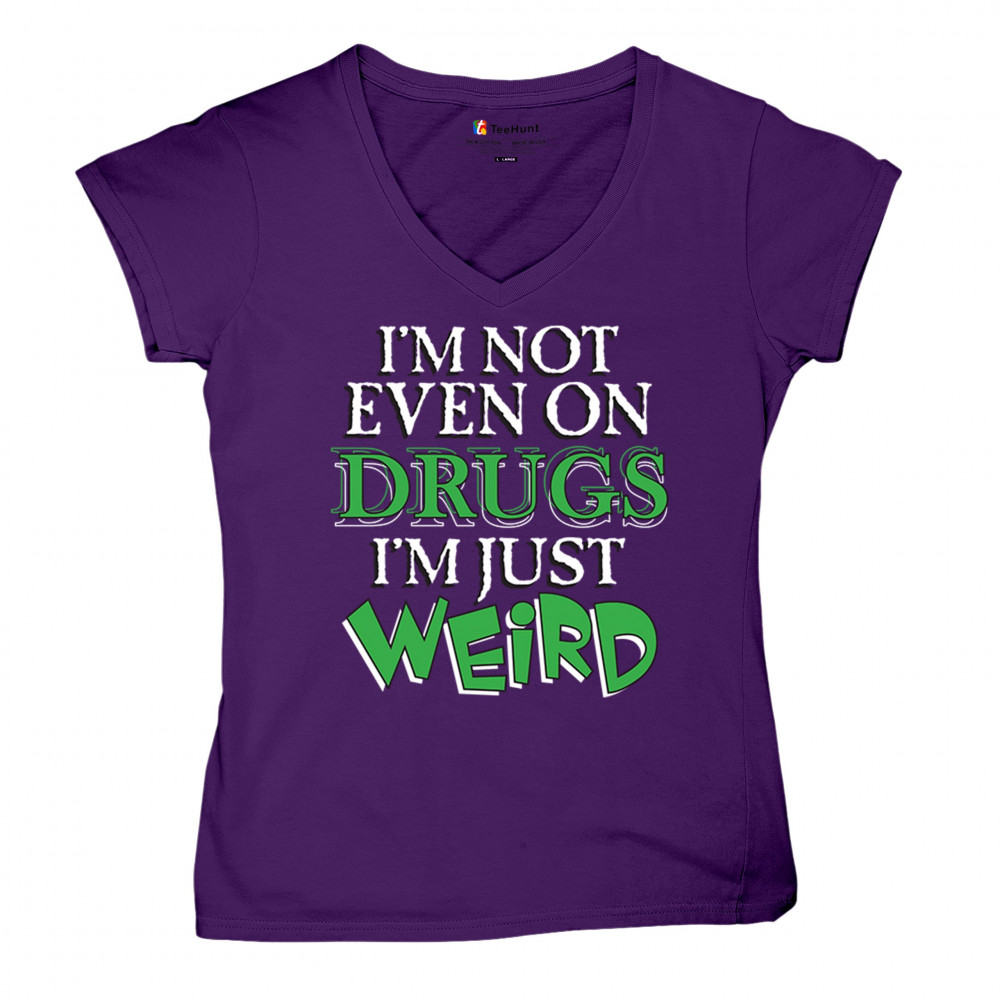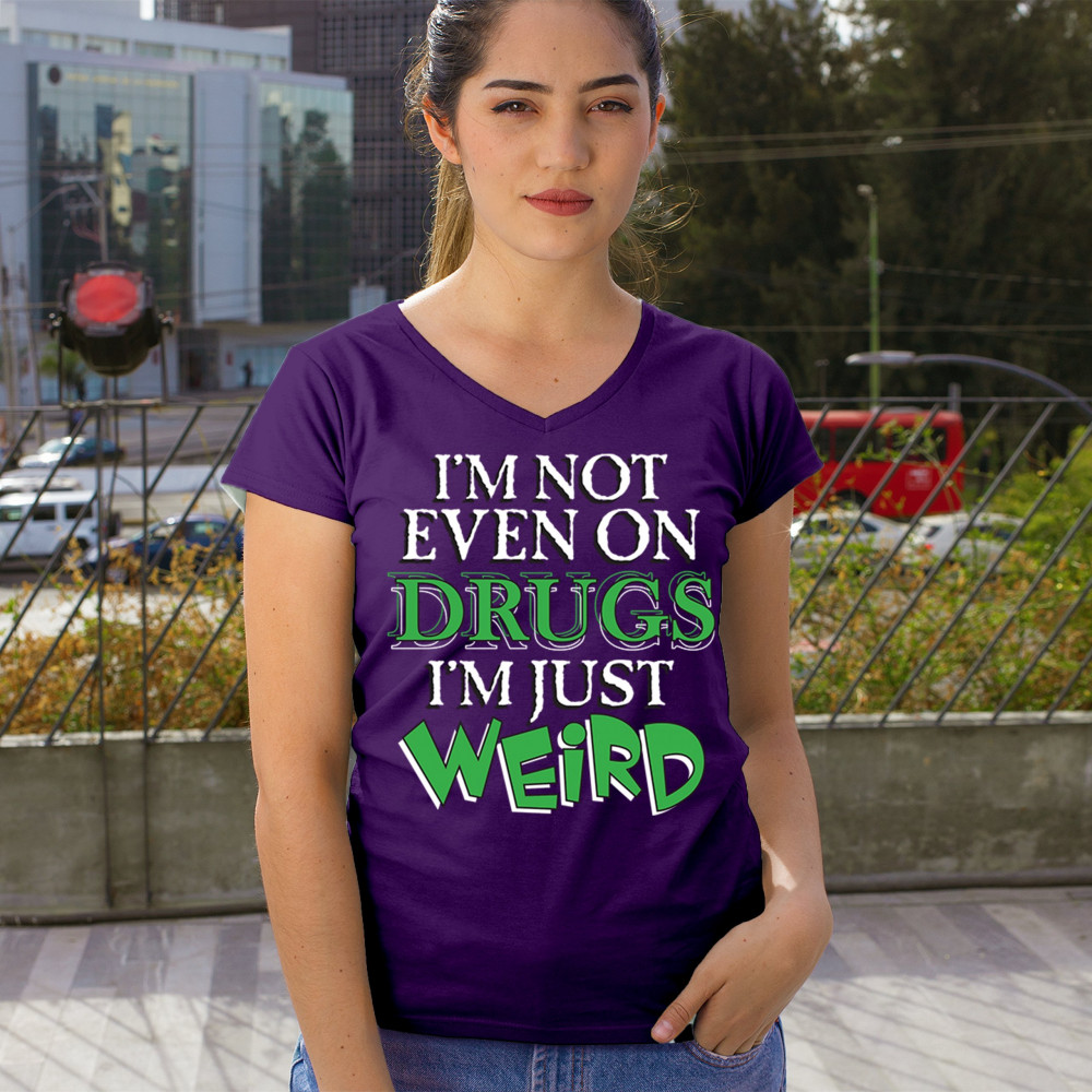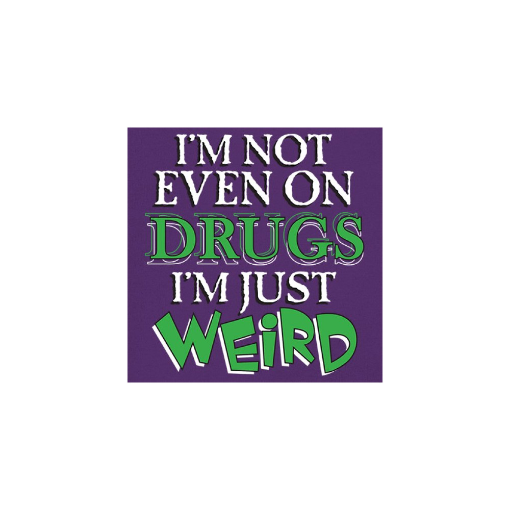 Bold weird design for introverts and quirky minds. Says “I'm not even on drugs I'm just weirdâ€â€”perfect for awkward humor and loud energy.