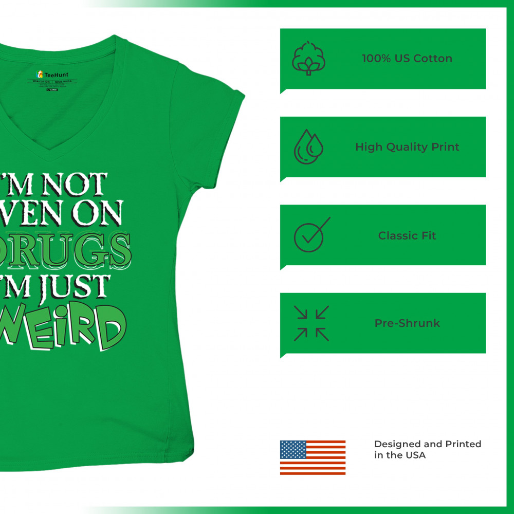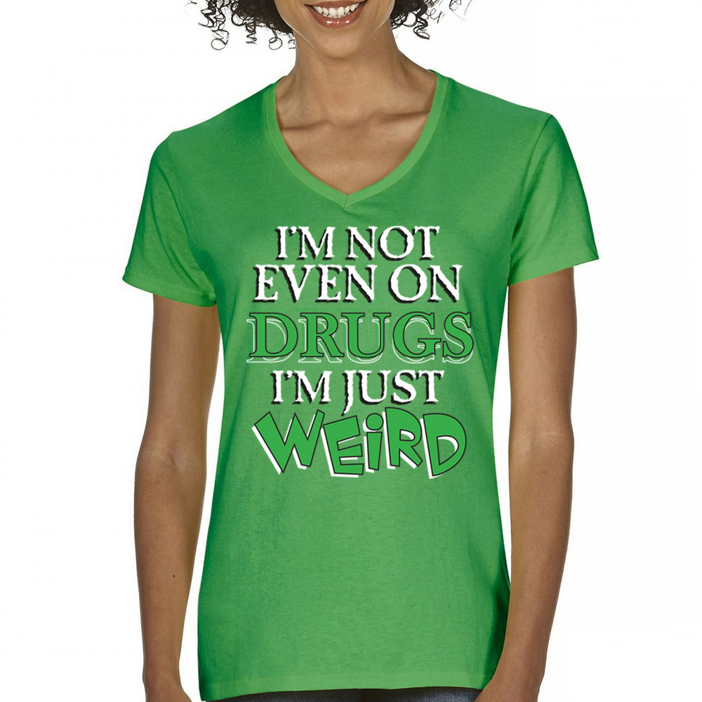 Bold weird design for introverts and quirky minds. Says “I'm not even on drugs I'm just weirdâ€â€”perfect for awkward humor and loud energy.