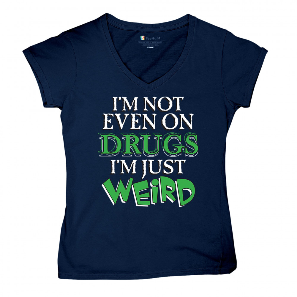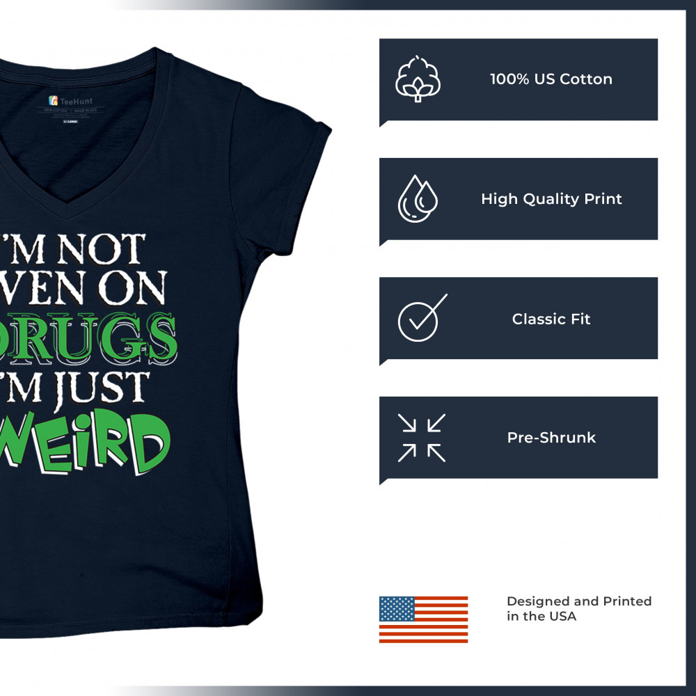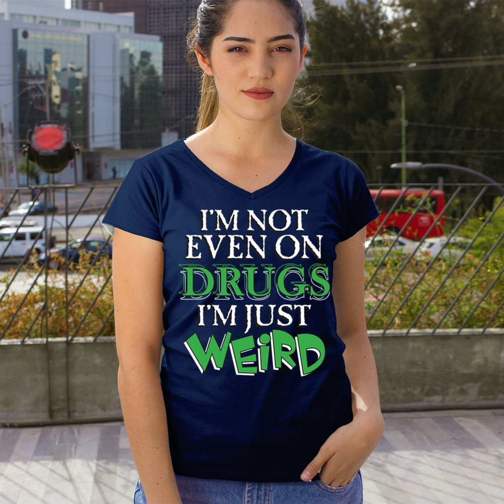 Bold weird design for introverts and quirky minds. Says “I'm not even on drugs I'm just weirdâ€â€”perfect for awkward humor and loud energy.
