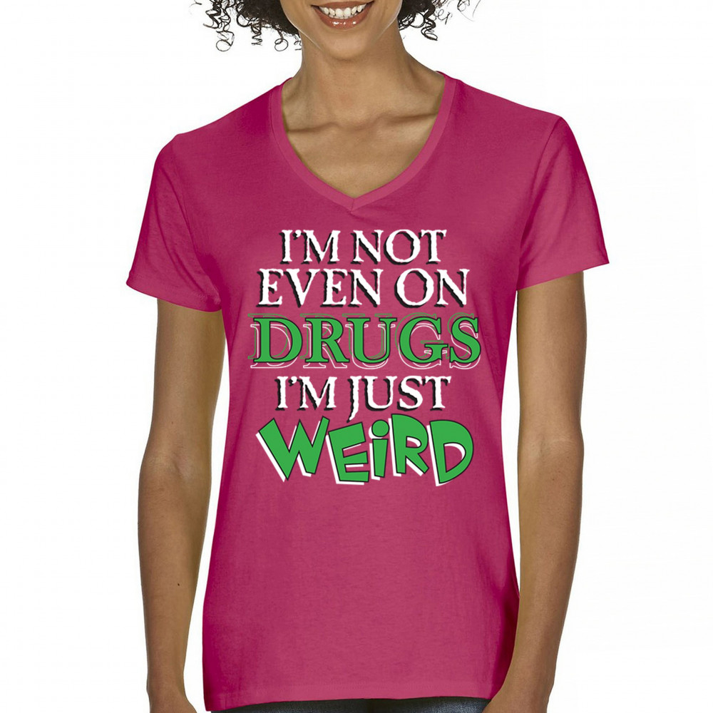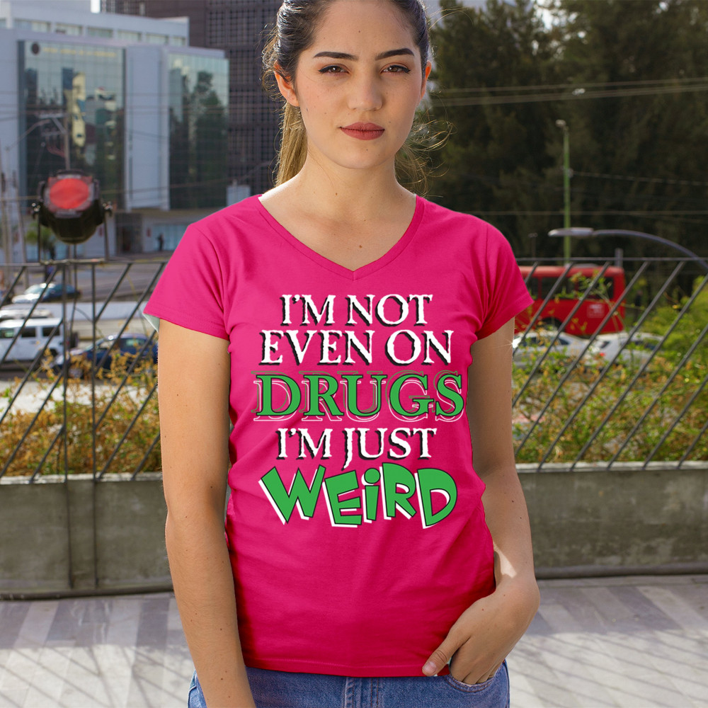 Bold weird design for introverts and quirky minds. Says “I'm not even on drugs I'm just weirdâ€â€”perfect for awkward humor and loud energy.