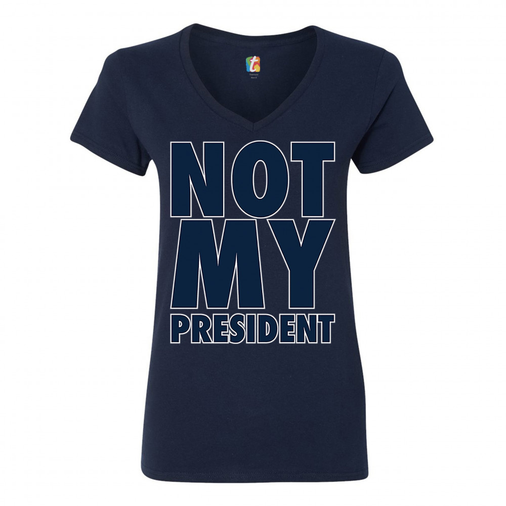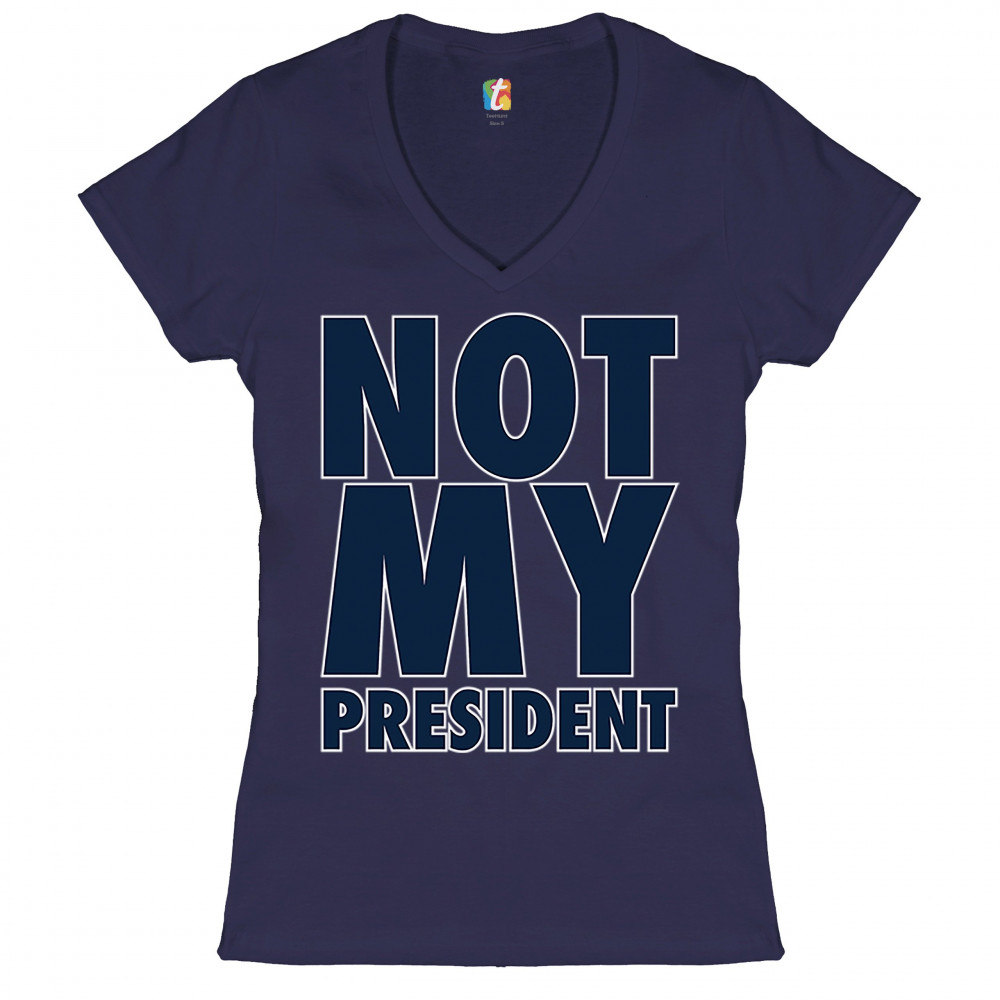 NOT MY PRESIDENT women's v-neck t-shirt anti biden pro trump deplorable tee navy blue