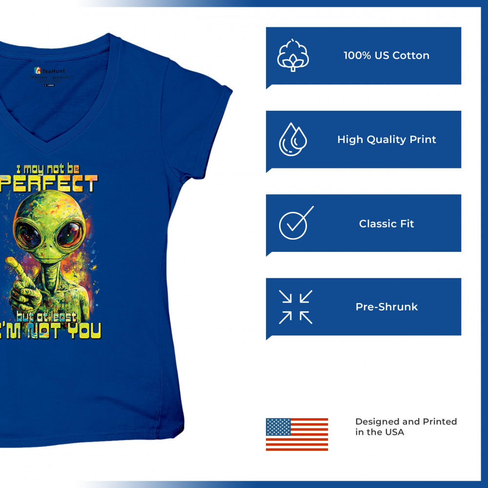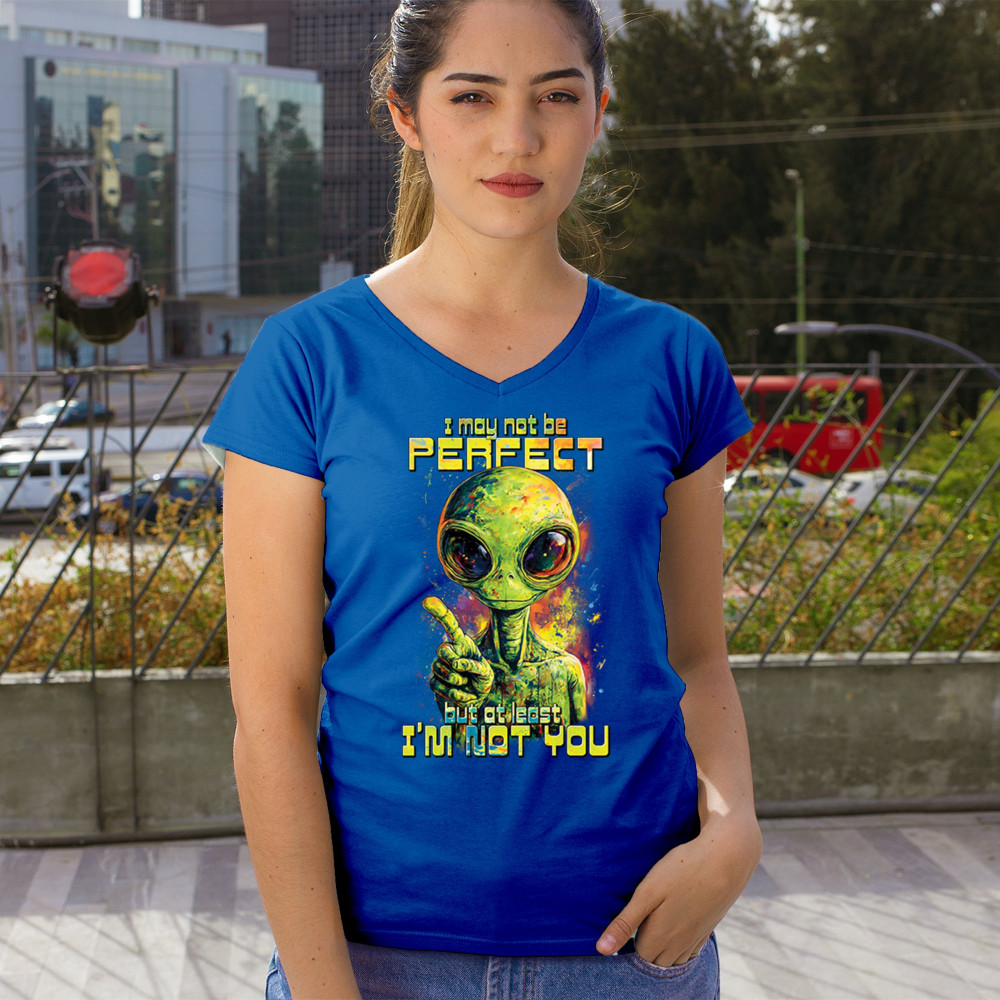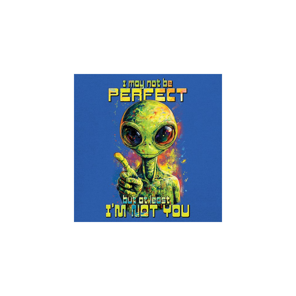 This smug alien design delivers sharp sarcastic humor with vibrant cosmic flair. Featuring a big-eyed extraterrestrial and the quote “I may not be perfect, but at least I’m not you,†it’s perfect for sci-fi fans, alien lovers, jokesters, and oddballs alike. A bold, funny statement for parties, UFO events, and festivals.