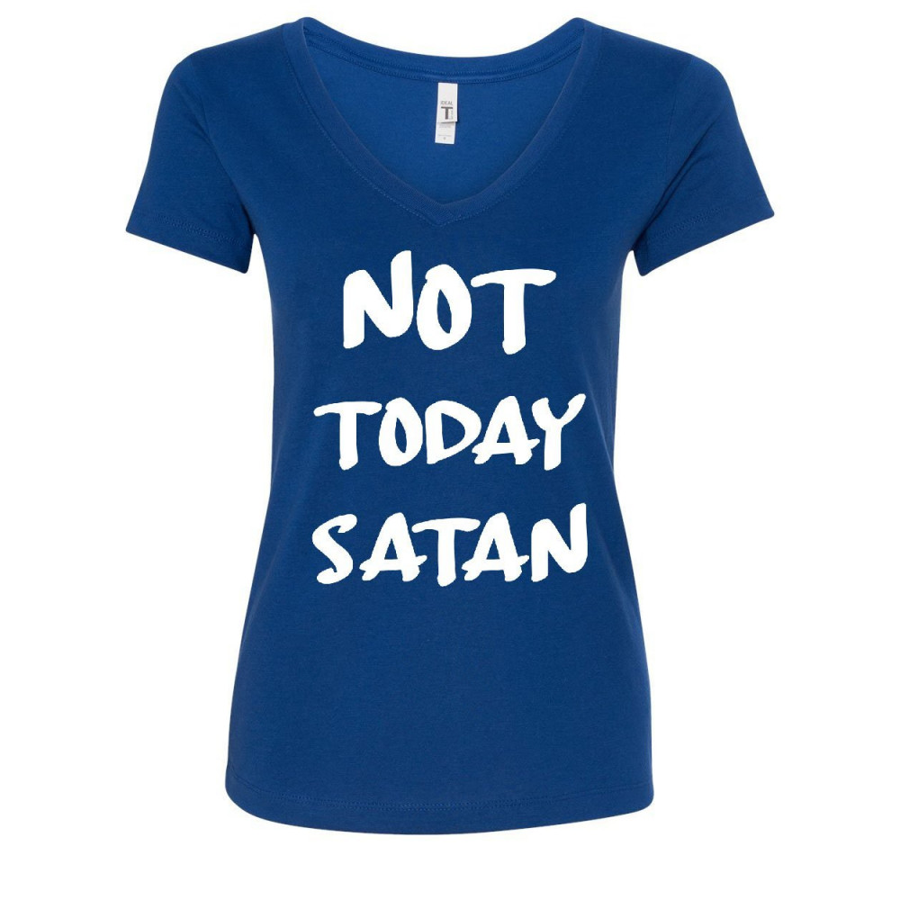 NOT TODAY SATAN women's v-neck tee religious funny jesus religion royal blue