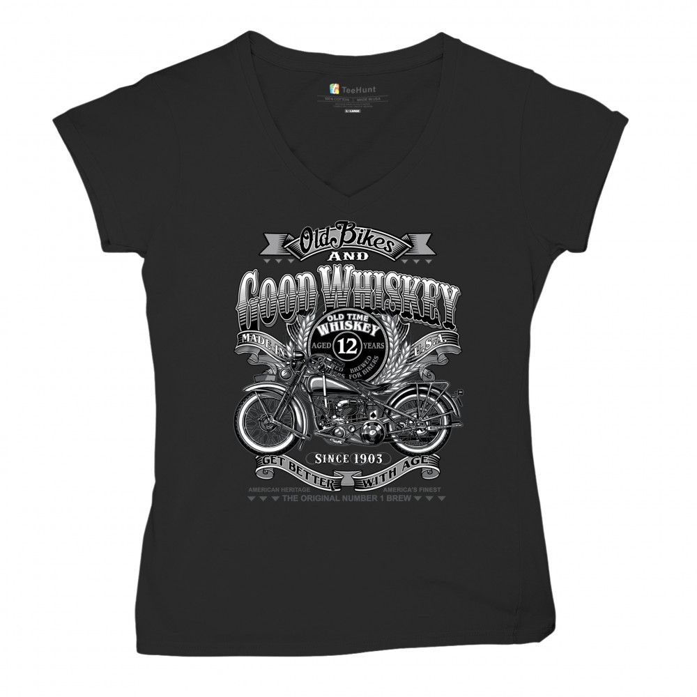 Vintage design with old bike, 12-year whiskey label, and 1903 tribute—perfect for bikers who ride hard and sip slow.