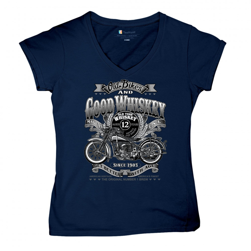 Vintage design with old bike, 12-year whiskey label, and 1903 tribute—perfect for bikers who ride hard and sip slow.