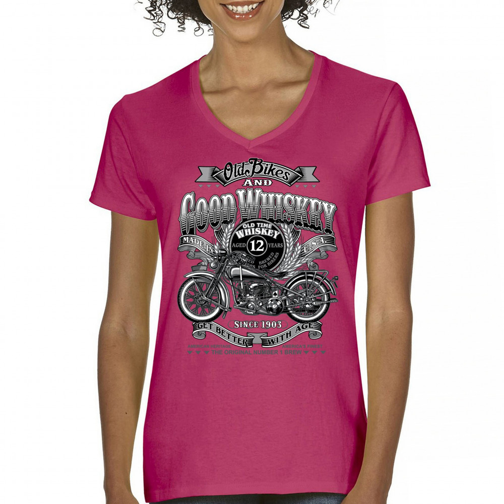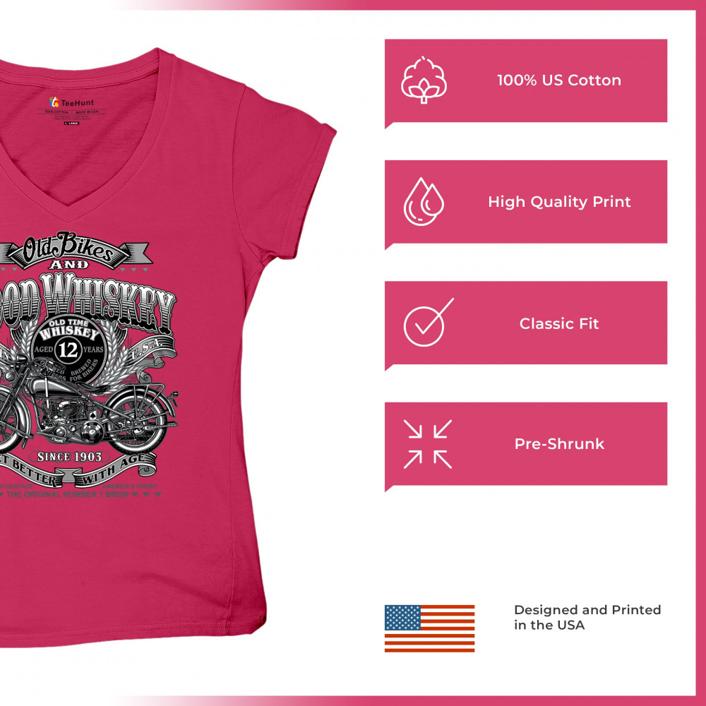 Vintage design with old bike, 12-year whiskey label, and 1903 tribute—perfect for bikers who ride hard and sip slow.