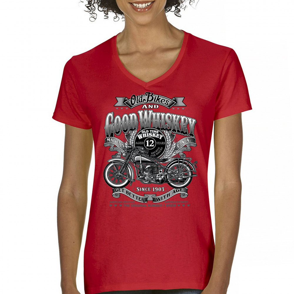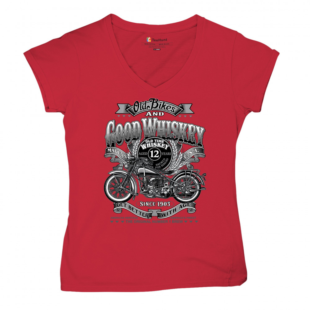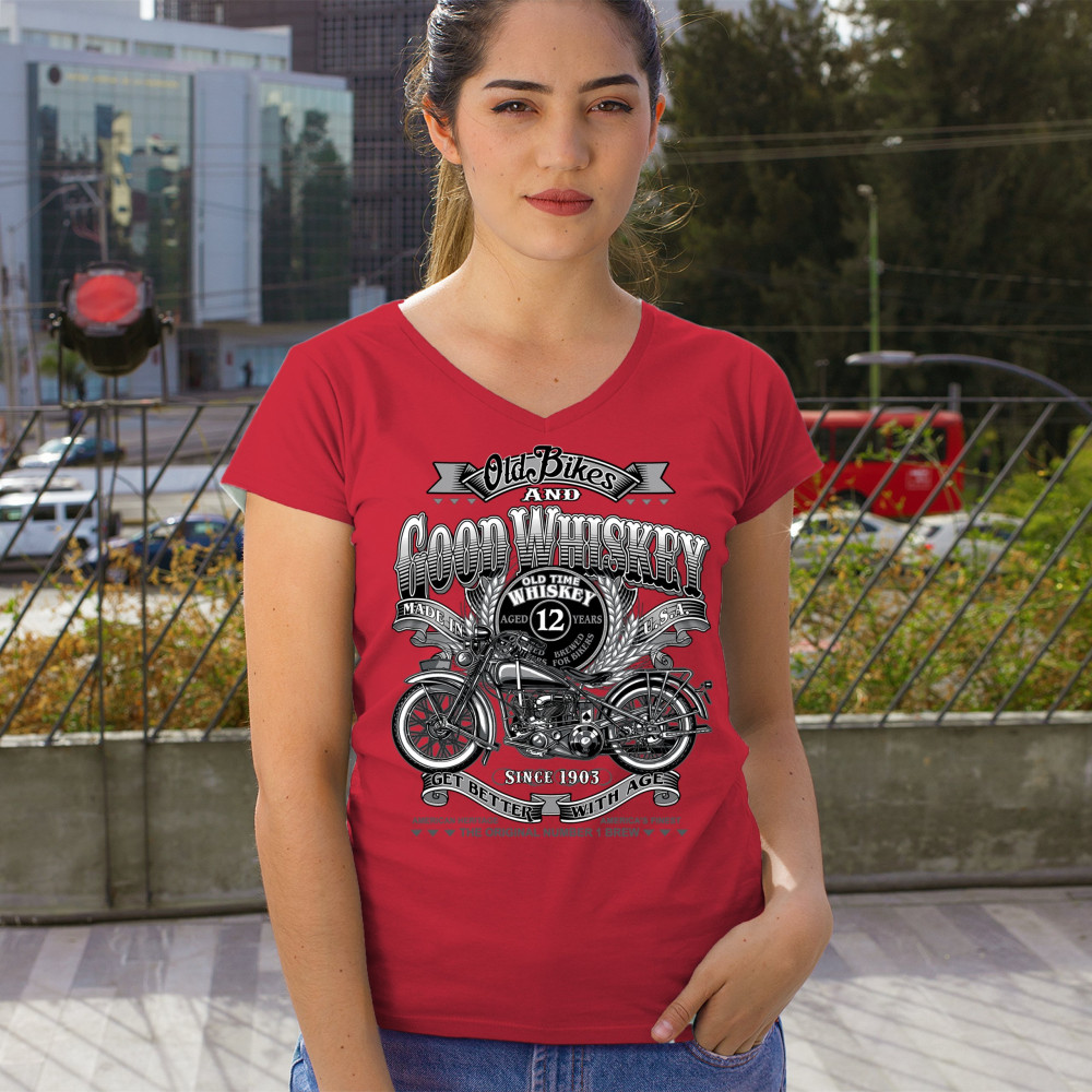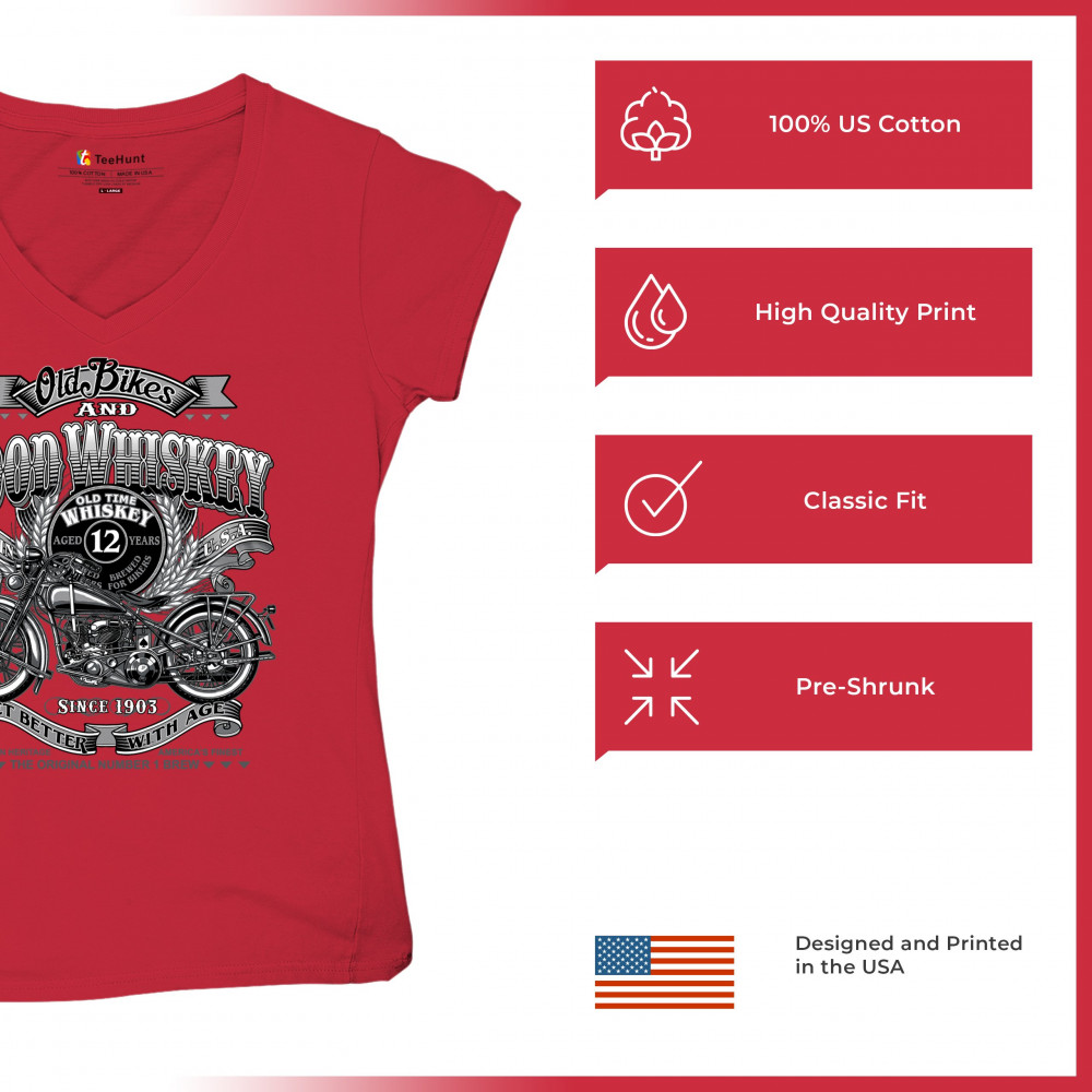 Vintage design with old bike, 12-year whiskey label, and 1903 tribute—perfect for bikers who ride hard and sip slow.