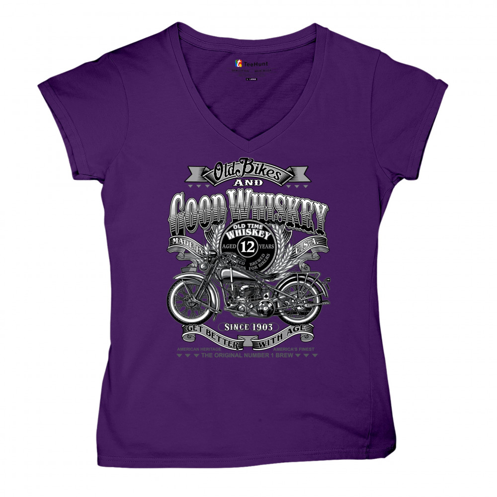 Vintage design with old bike, 12-year whiskey label, and 1903 tribute—perfect for bikers who ride hard and sip slow.