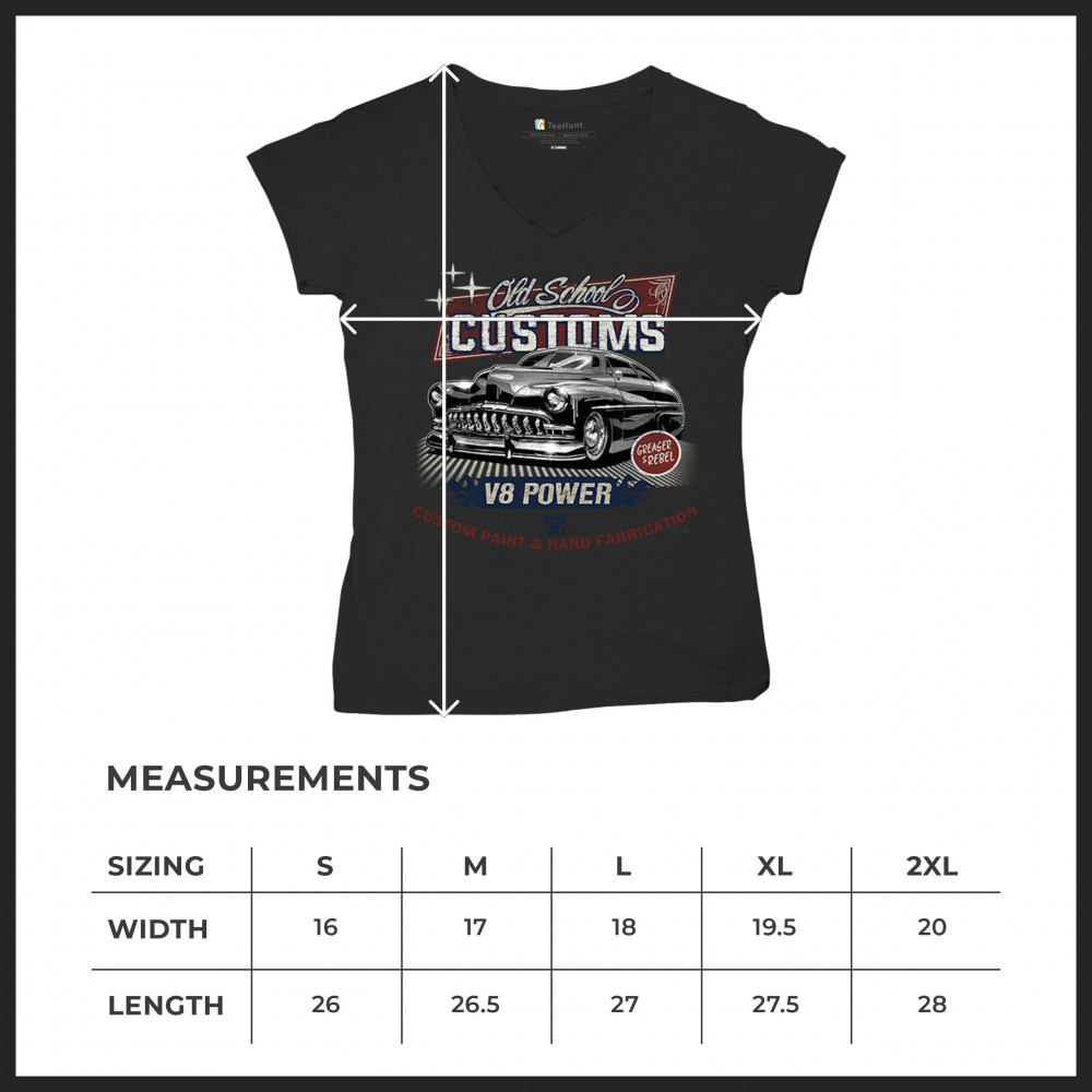 Celebrate classic automotive culture with our "Old School Customs" t-shirt, featuring a V8 power design. Perfect for car enthusiasts and fans of vintage rides.