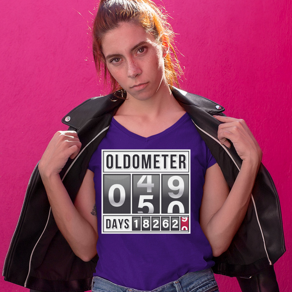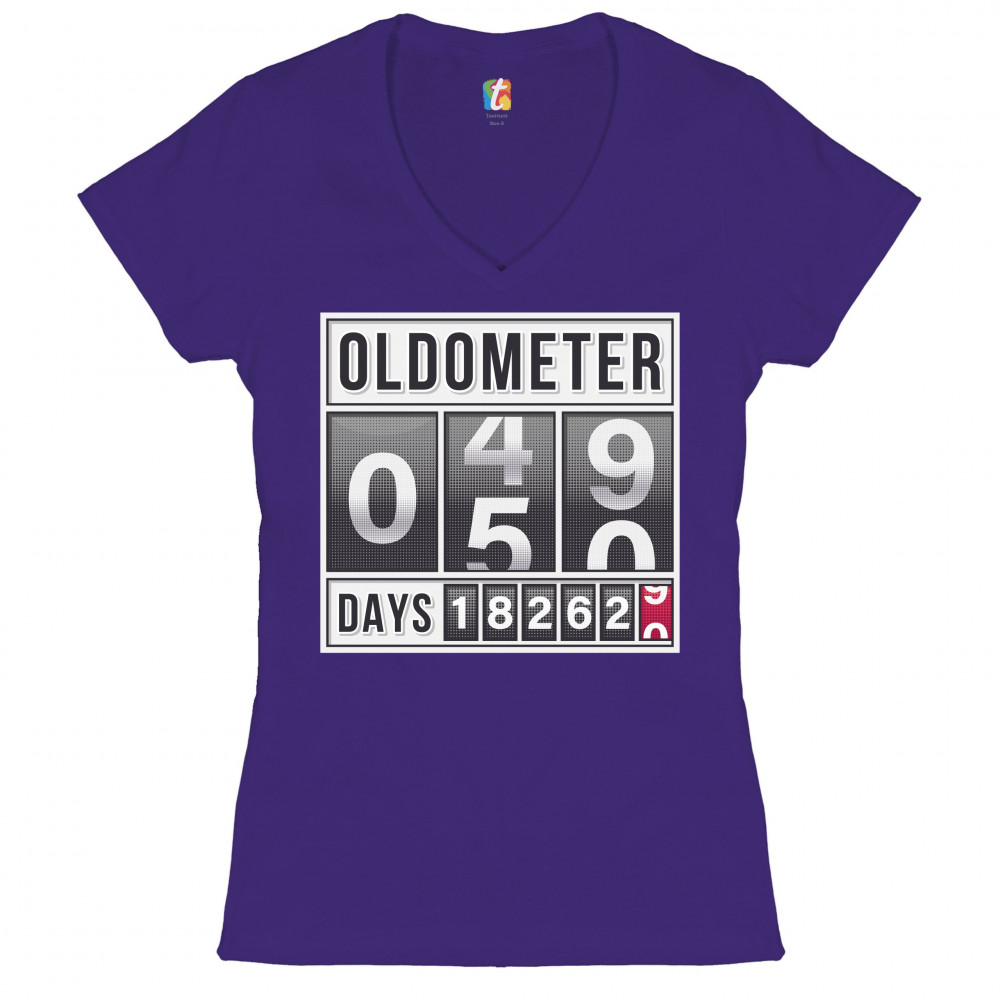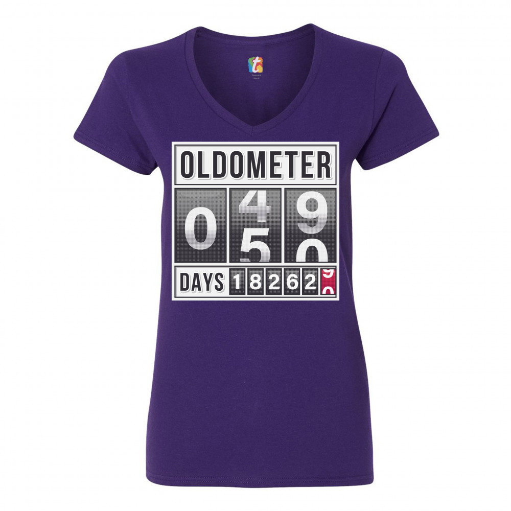 OLDOMETER 49-50 women's v-neck t-shirt 50th anniversary 50 af odometer tee purple