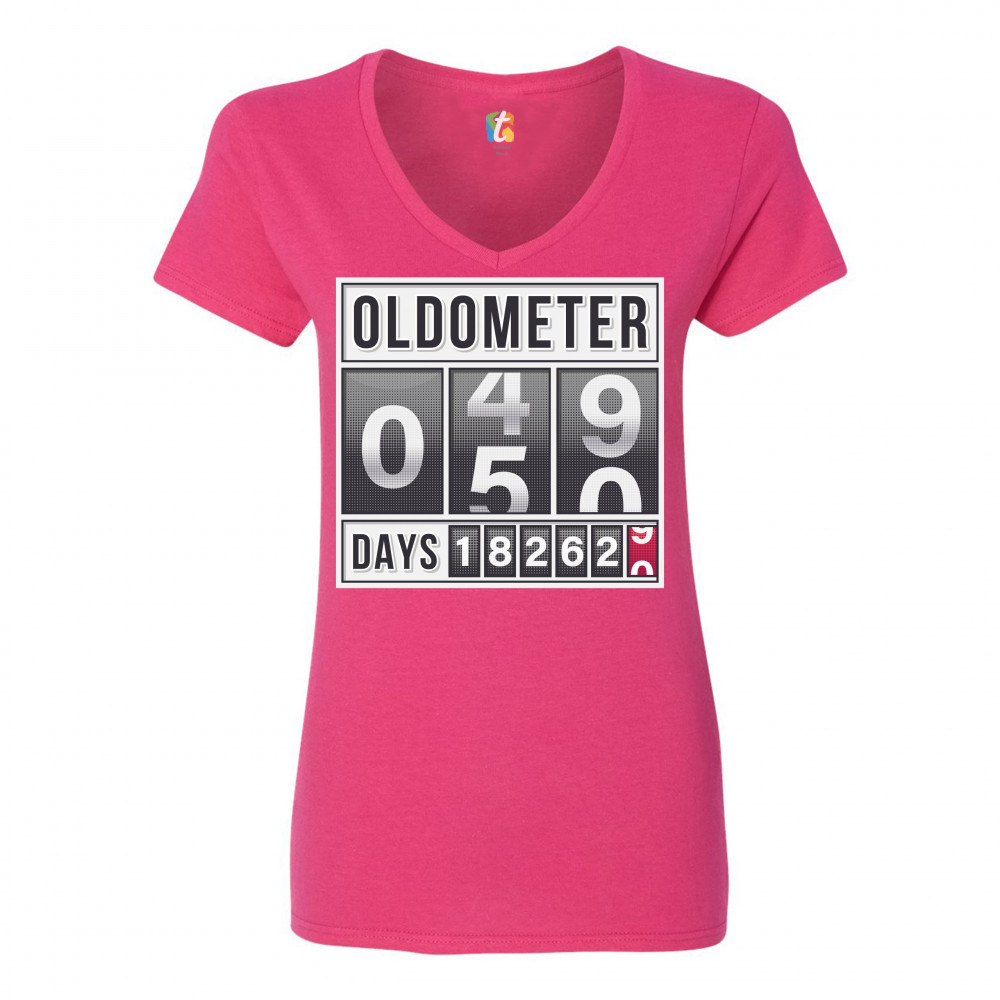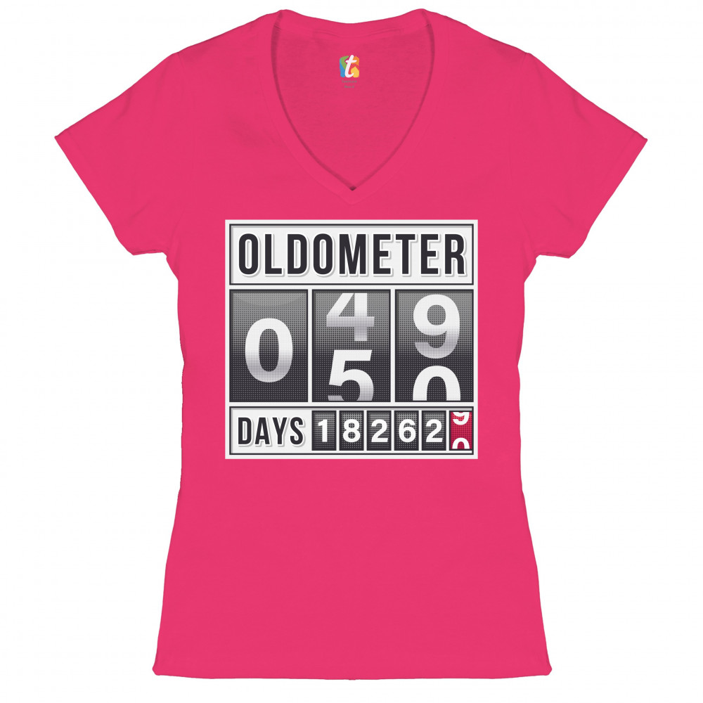 OLDOMETER 49-50 women's v-neck t-shirt 50th anniversary 50 af odometer tee pink
