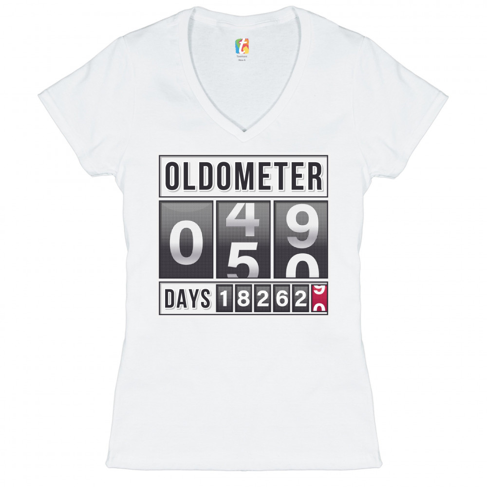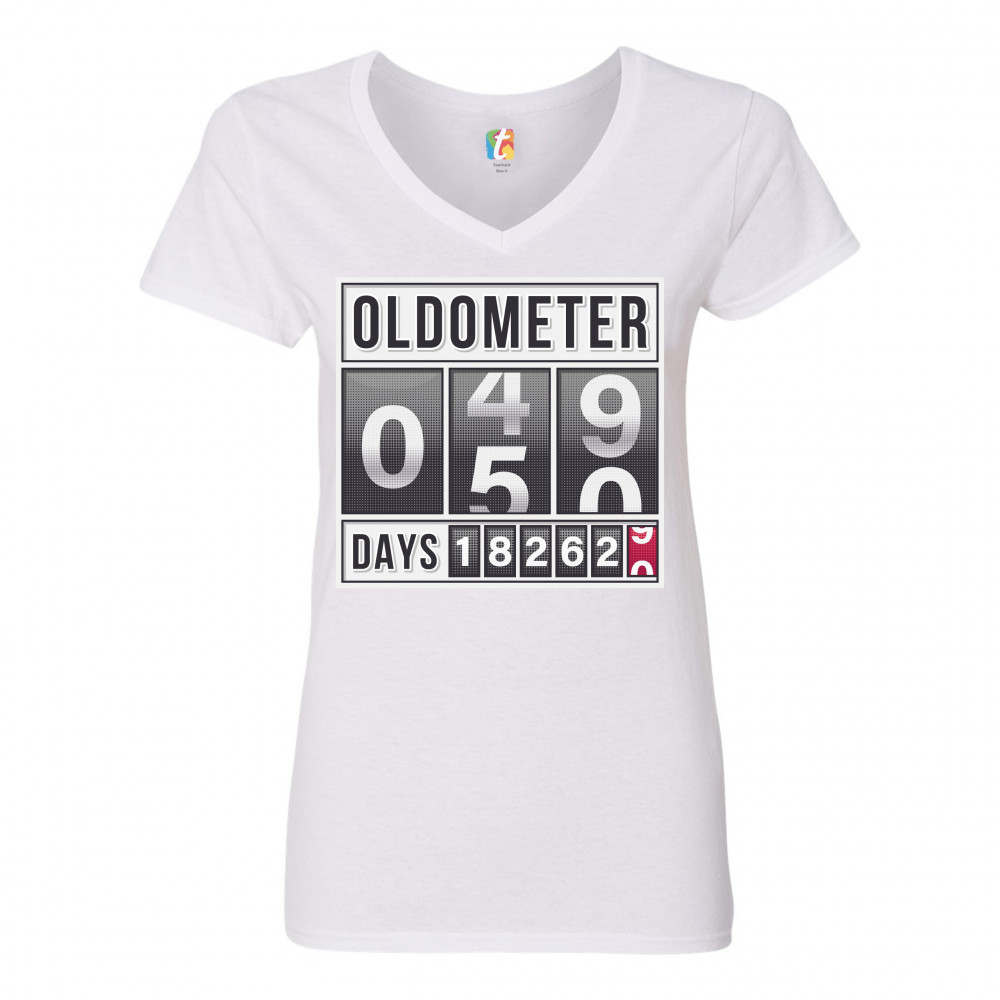 OLDOMETER 49-50 women's v-neck t-shirt 50th anniversary 50 af odometer tee white