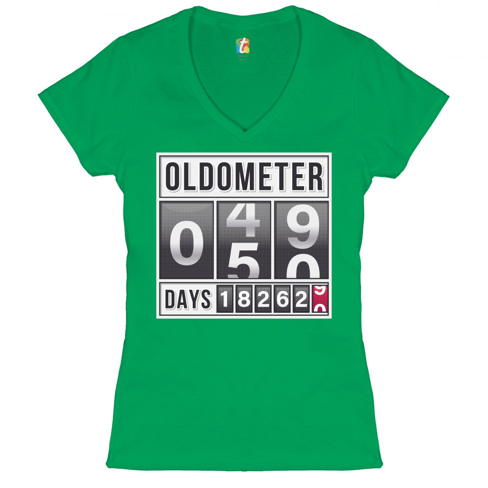 OLDOMETER 49-50 women's v-neck t-shirt 50th anniversary 50 af odometer tee green