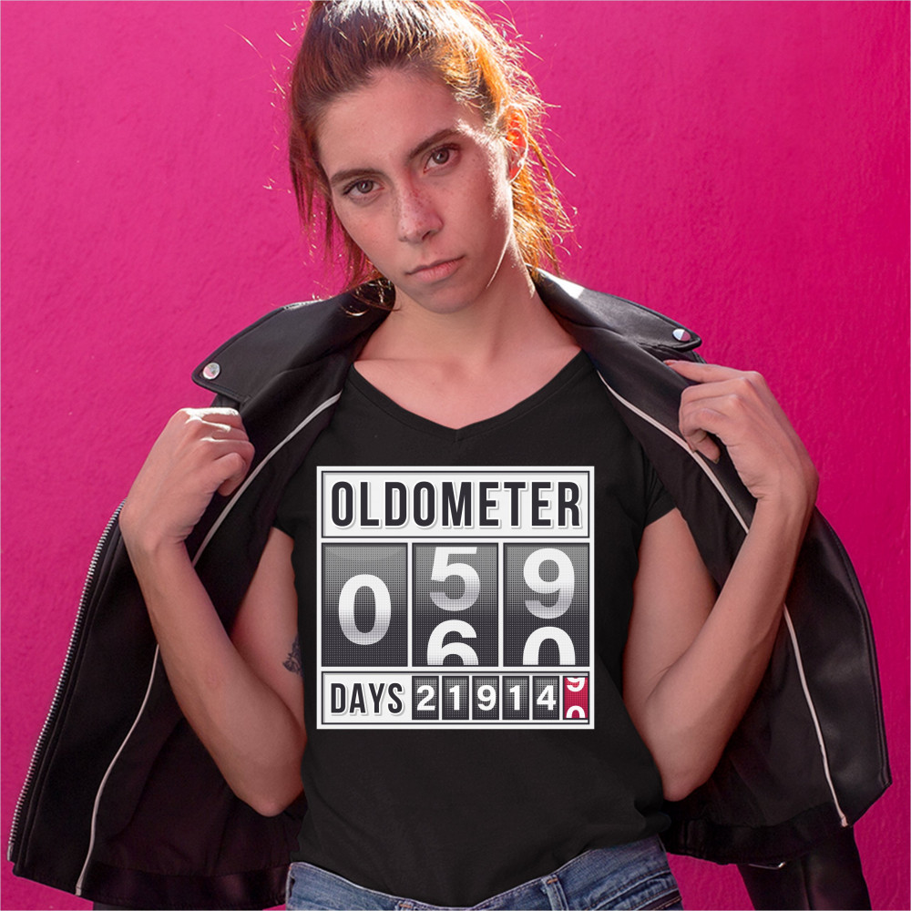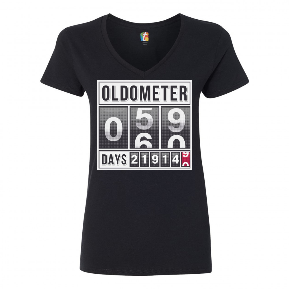 OLDOMETER 59-60 women's v-neck t-shirt old lives matter funny odometer tee black