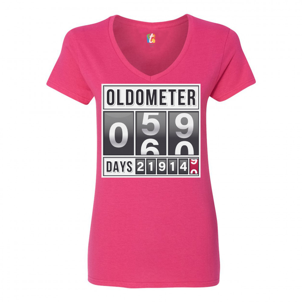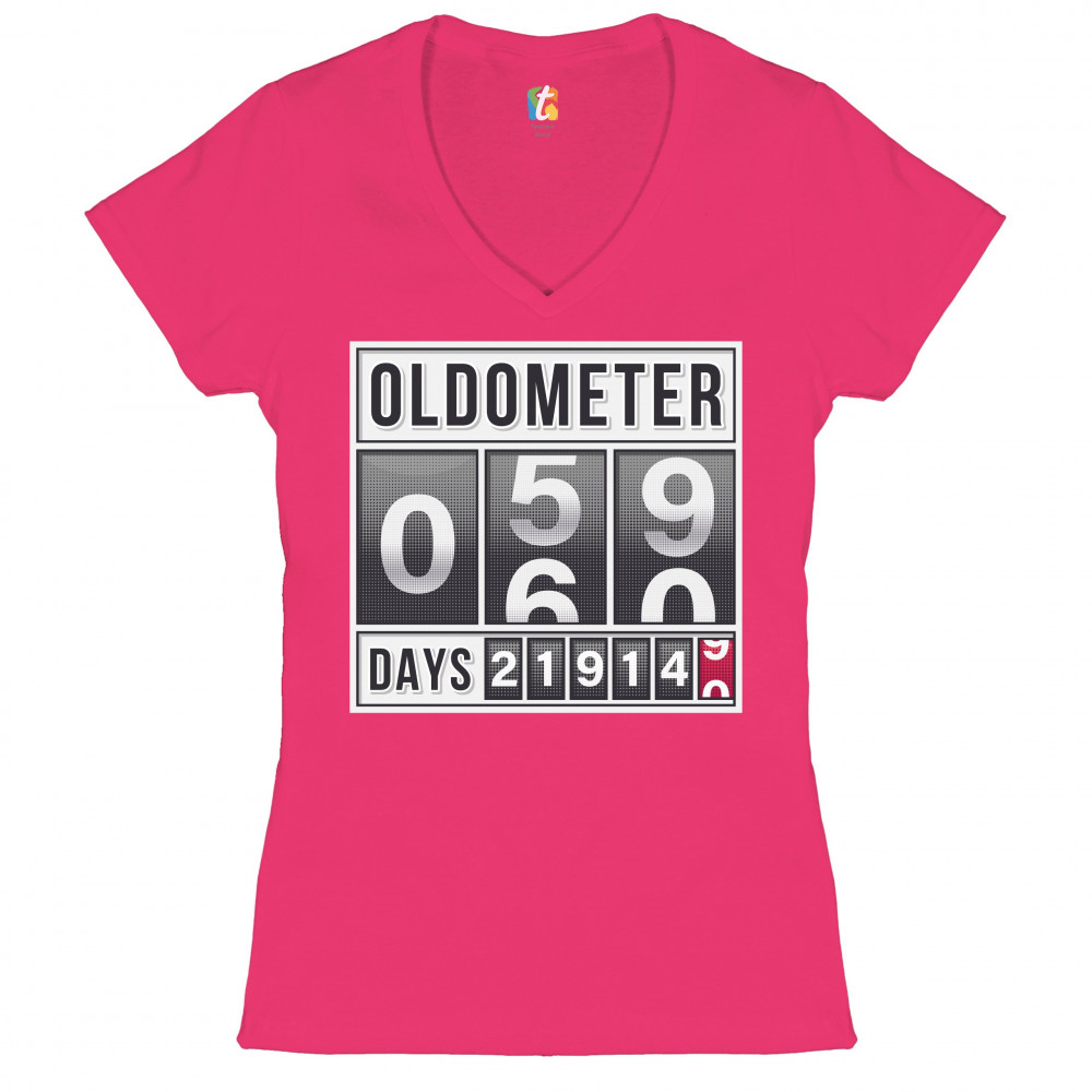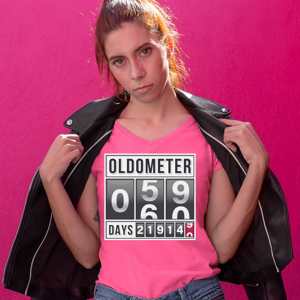 OLDOMETER 59-60 women's v-neck t-shirt old lives matter funny odometer tee pink