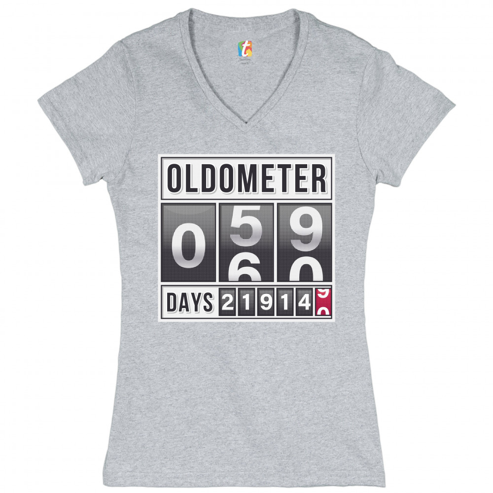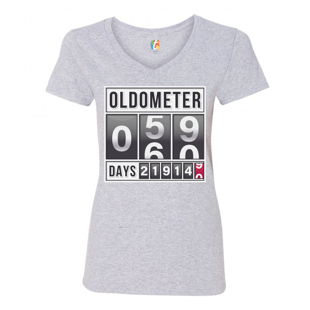 OLDOMETER 59-60 women's v-neck t-shirt old lives matter funny odometer tee gray