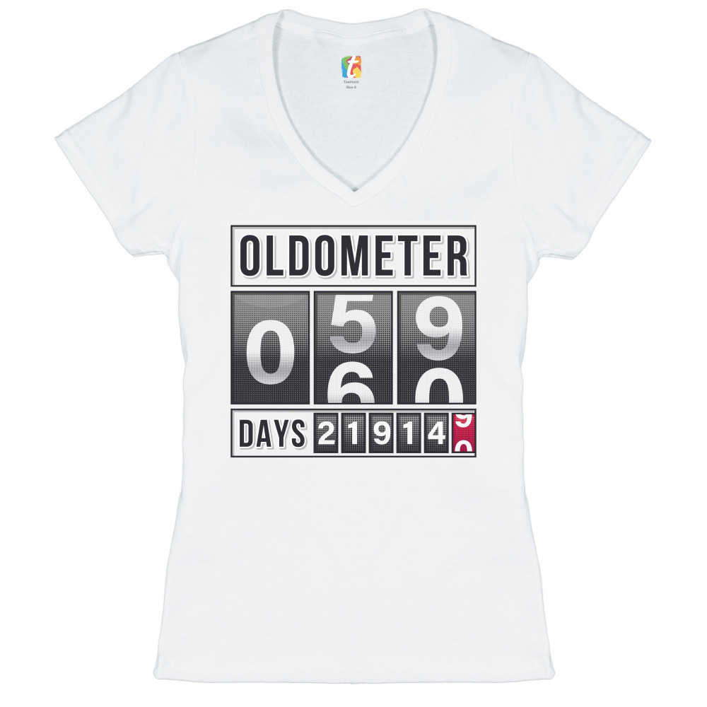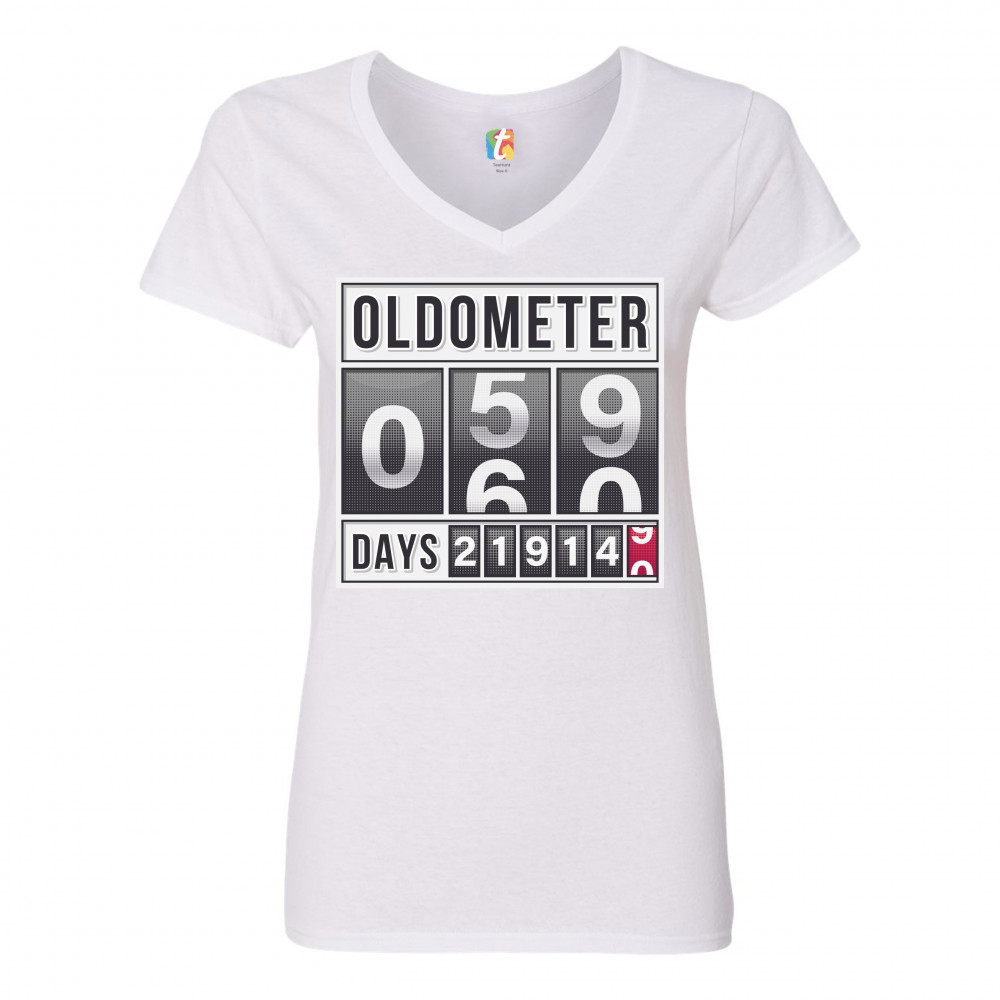 OLDOMETER 59-60 women's v-neck t-shirt old lives matter funny odometer tee white
