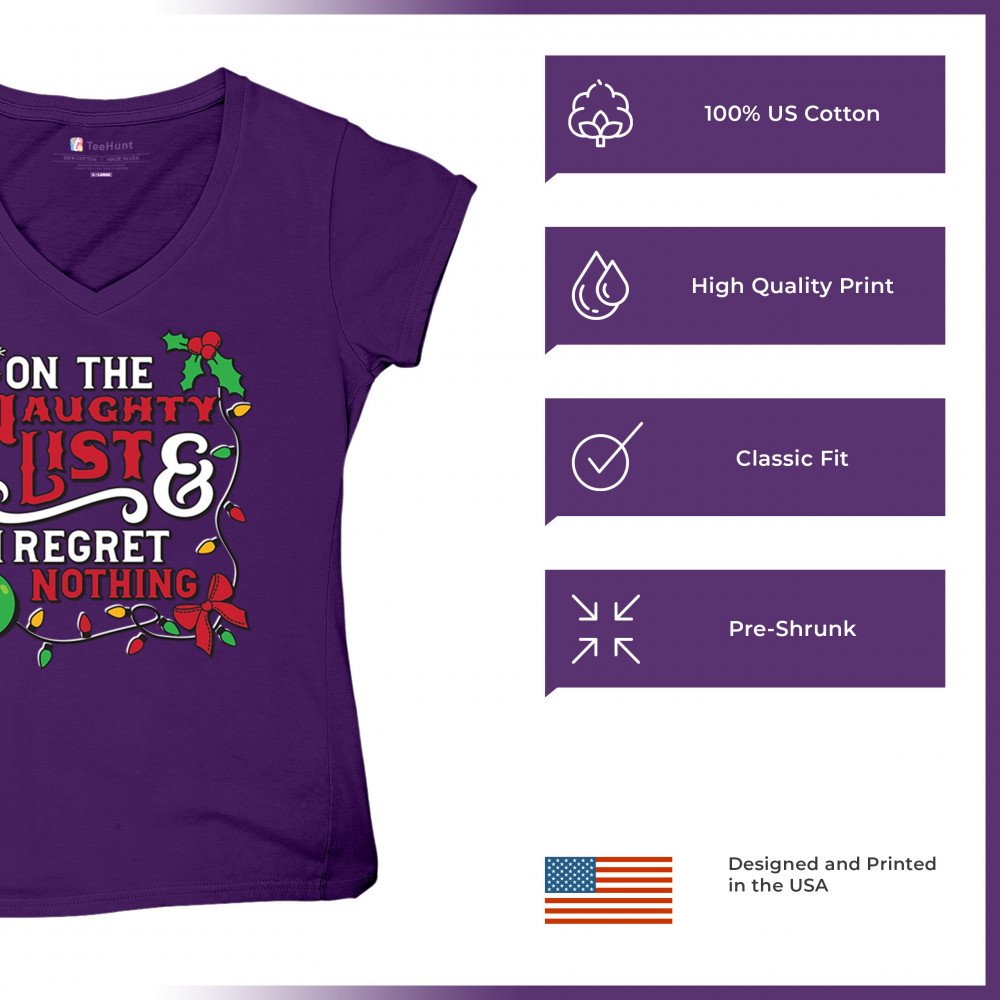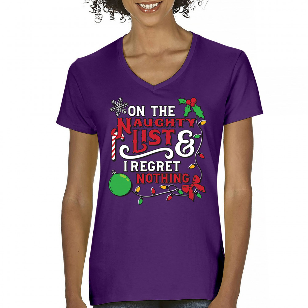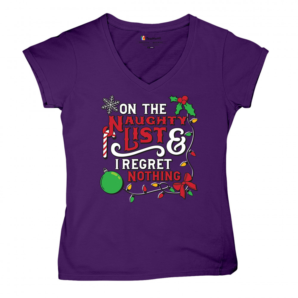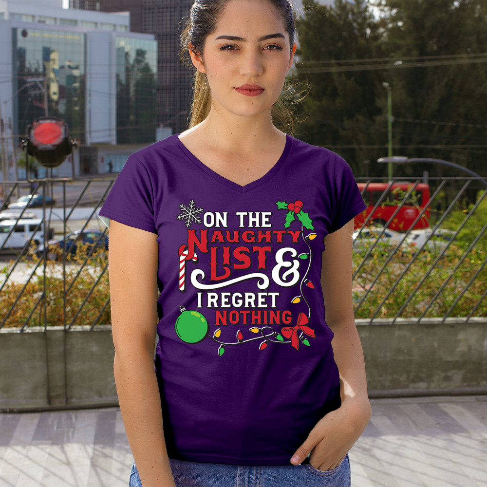 Express your holiday spirit with humor through the "Naughty List & I Regret Nothing" design, a perfect companion for Christmas celebrations, gift exchanges, or festive family gatherings. It adds a touch of playfulness to your winter wardrobe while spreading joy and laughter. Ideal for pairing with an ugly sweater or cozy holiday apparel, it’s the ultimate way to stay jolly and carefree throughout the season.