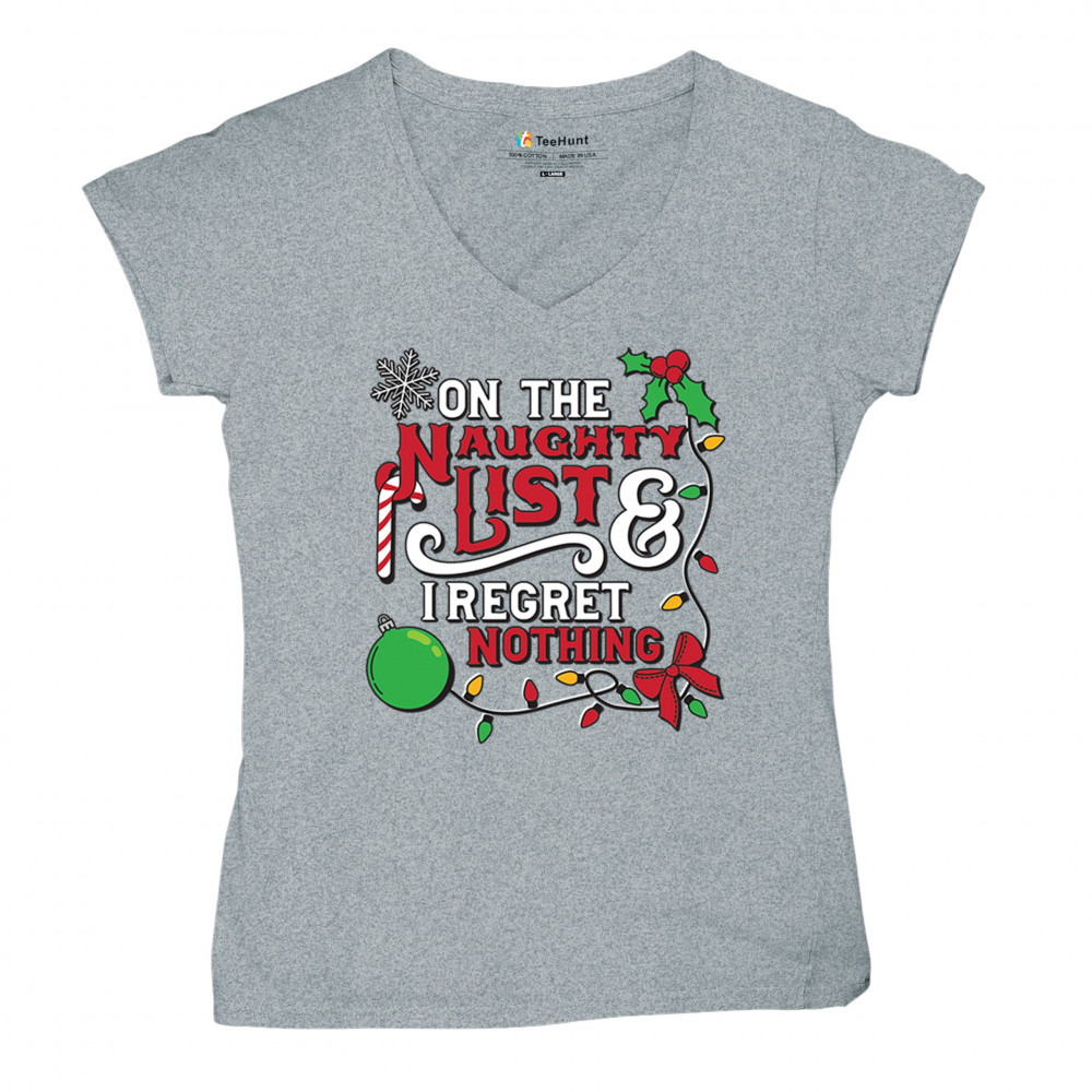 Express your holiday spirit with humor through the "Naughty List & I Regret Nothing" design, a perfect companion for Christmas celebrations, gift exchanges, or festive family gatherings. It adds a touch of playfulness to your winter wardrobe while spreading joy and laughter. Ideal for pairing with an ugly sweater or cozy holiday apparel, it’s the ultimate way to stay jolly and carefree throughout the season.