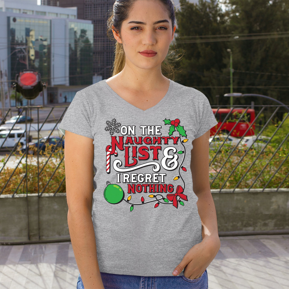 Celebrate the holidays with the playful “Naughty List & I Regret Nothing†design. Perfect for festive gatherings, ugly sweater parties, and holiday fun!