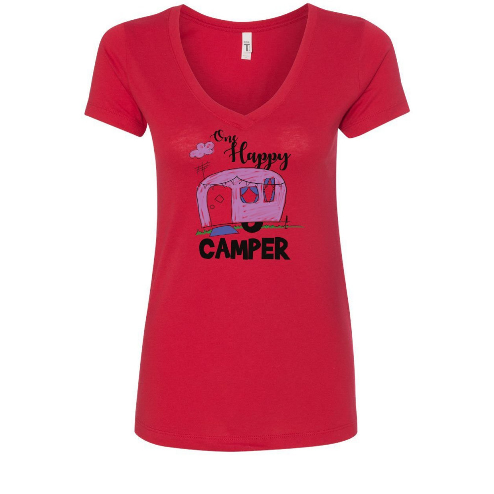 ONE HAPPY CAMPER RV one happy camper women's v-neck t-shirt rv trailer camping nature wilderness red