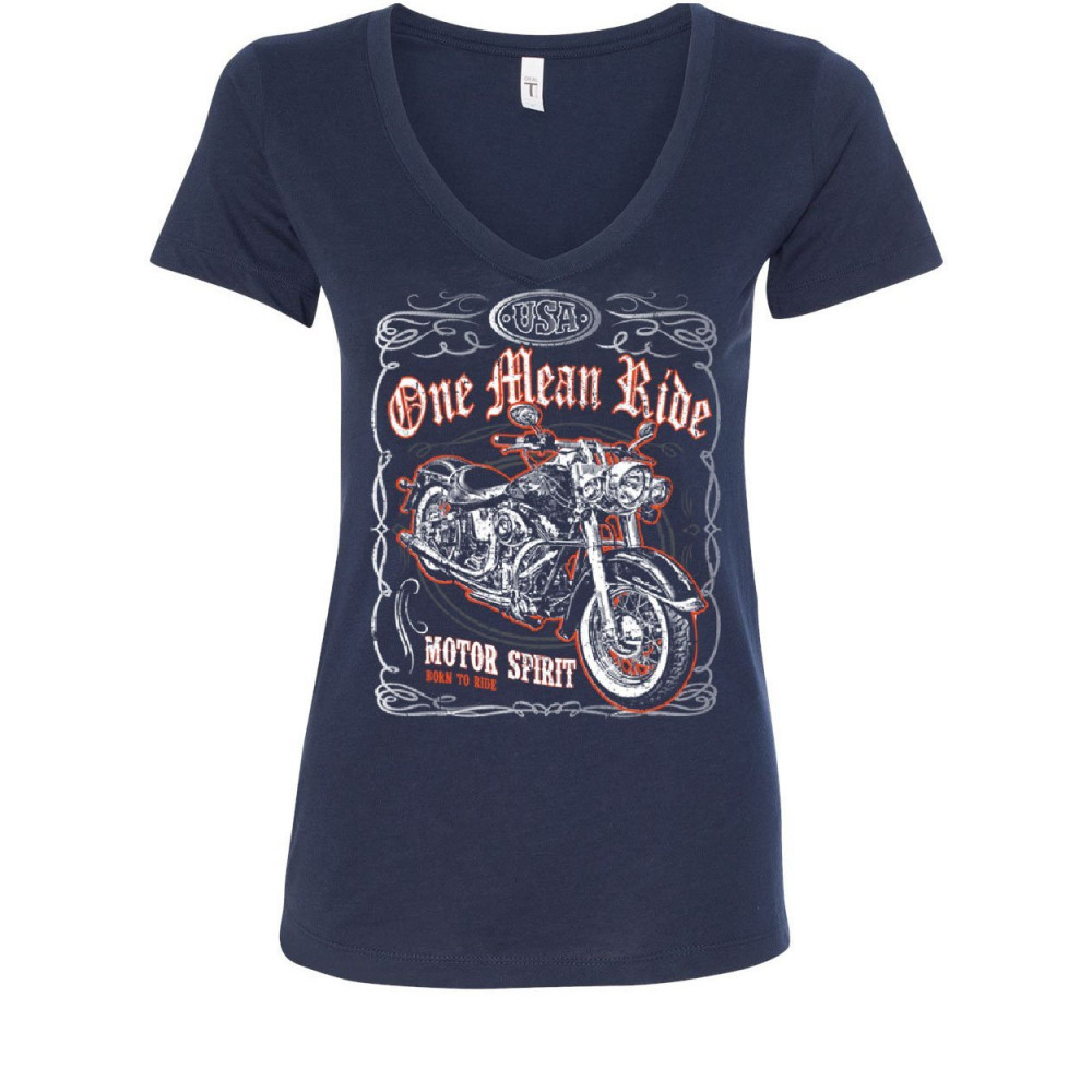 ONE MEAN RIDE women's v-neck t-shirt born to ride chopper bobber route 66 biker navy blue