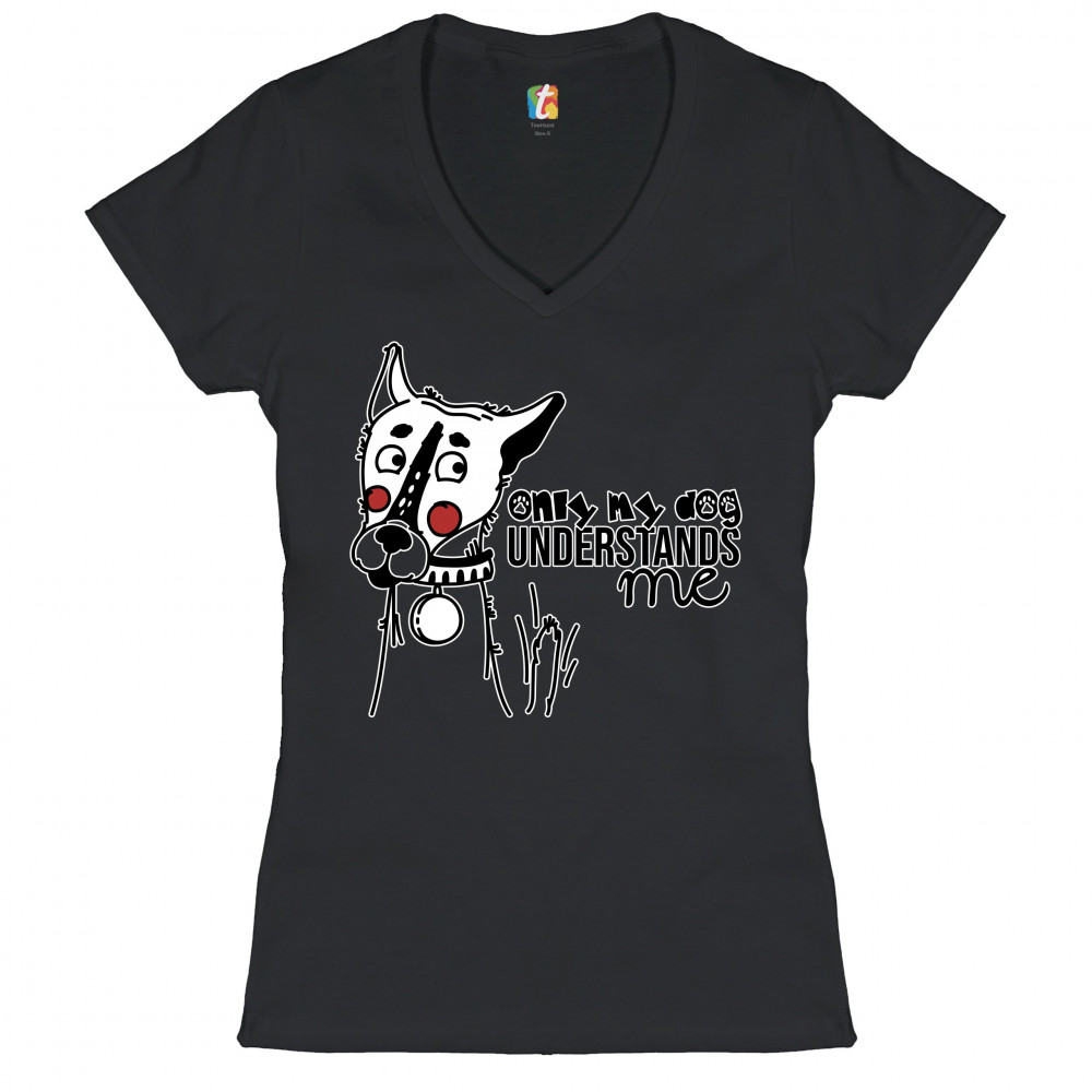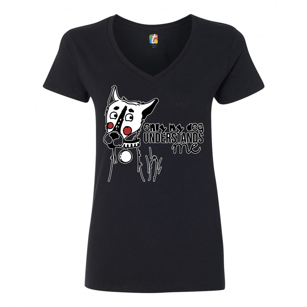 ONLY MY DOG UNDERSTANDS ME women's v-neck t-shirt pet owner i love my dog tee black