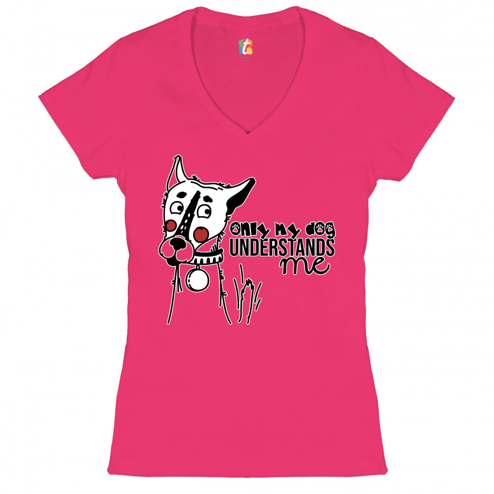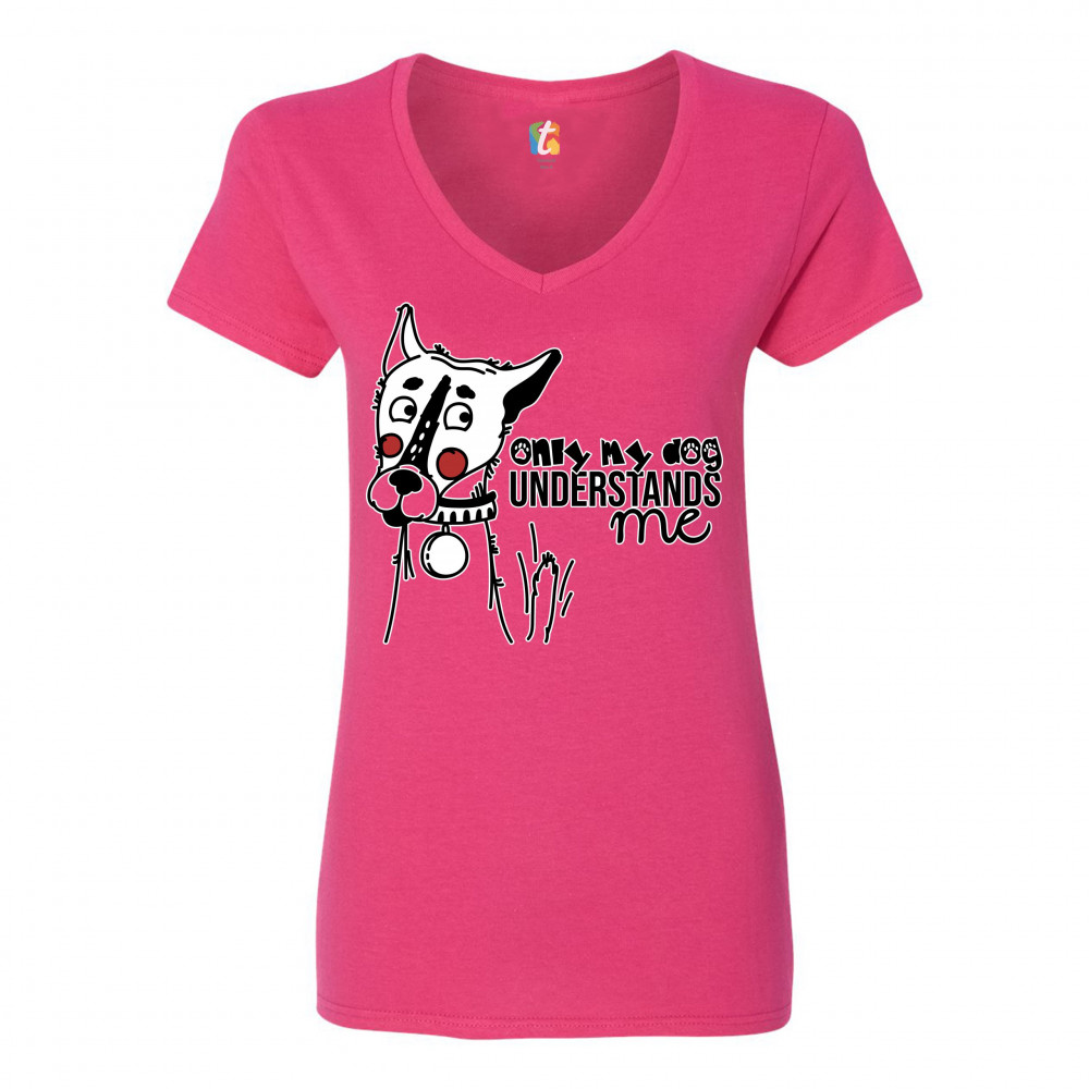 ONLY MY DOG UNDERSTANDS ME women's v-neck t-shirt pet owner i love my dog tee pink