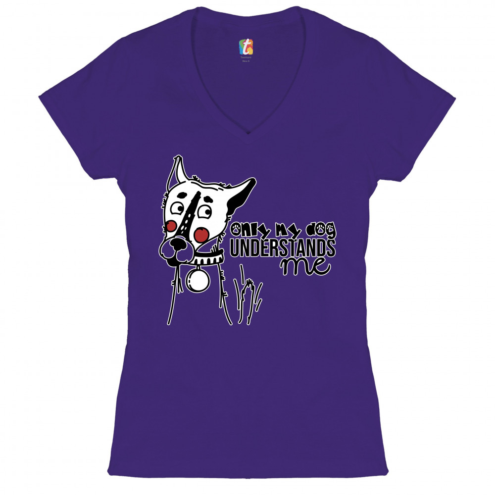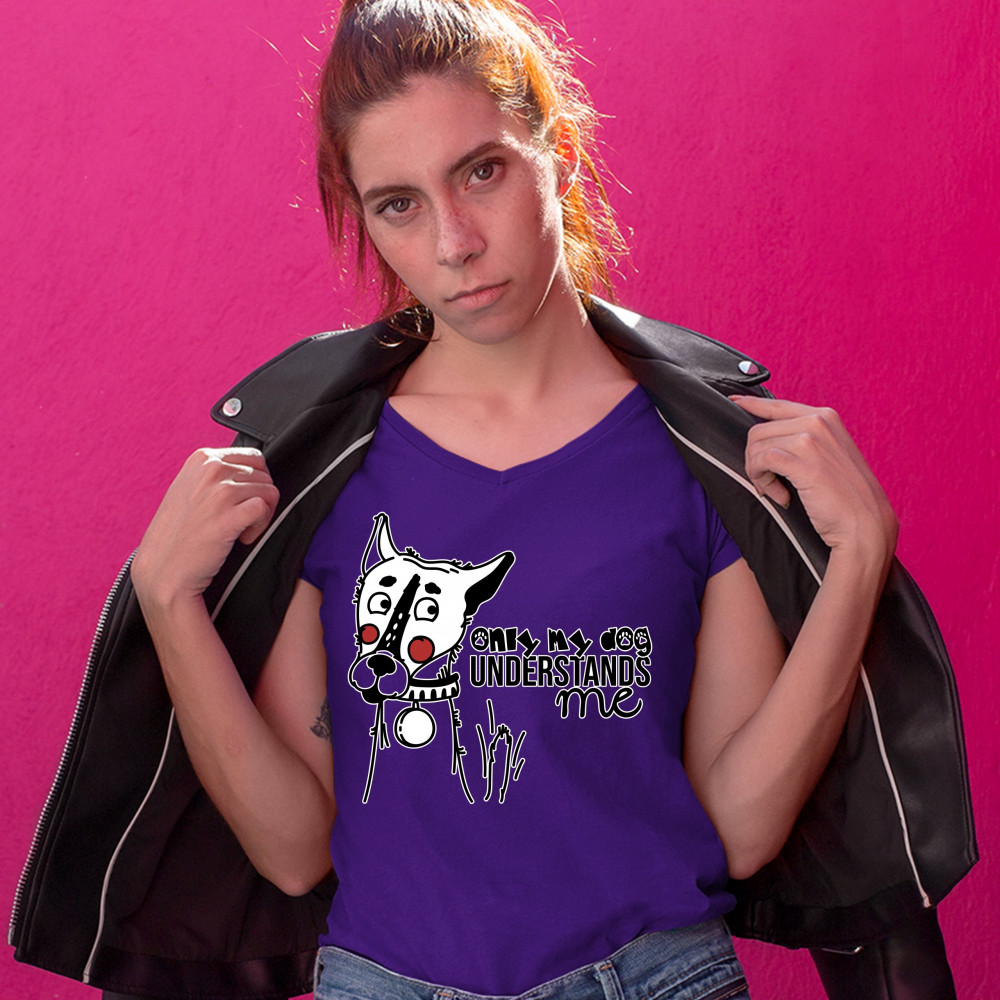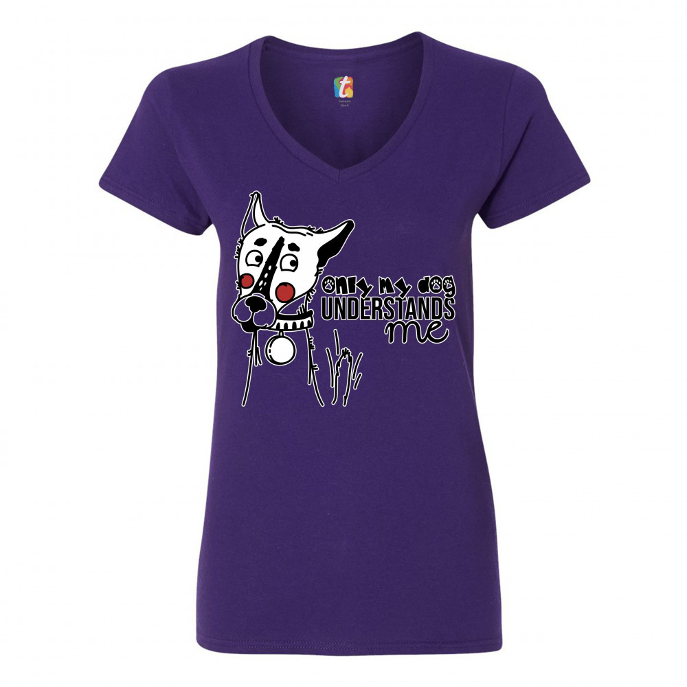 ONLY MY DOG UNDERSTANDS ME women's v-neck t-shirt pet owner i love my dog tee purple