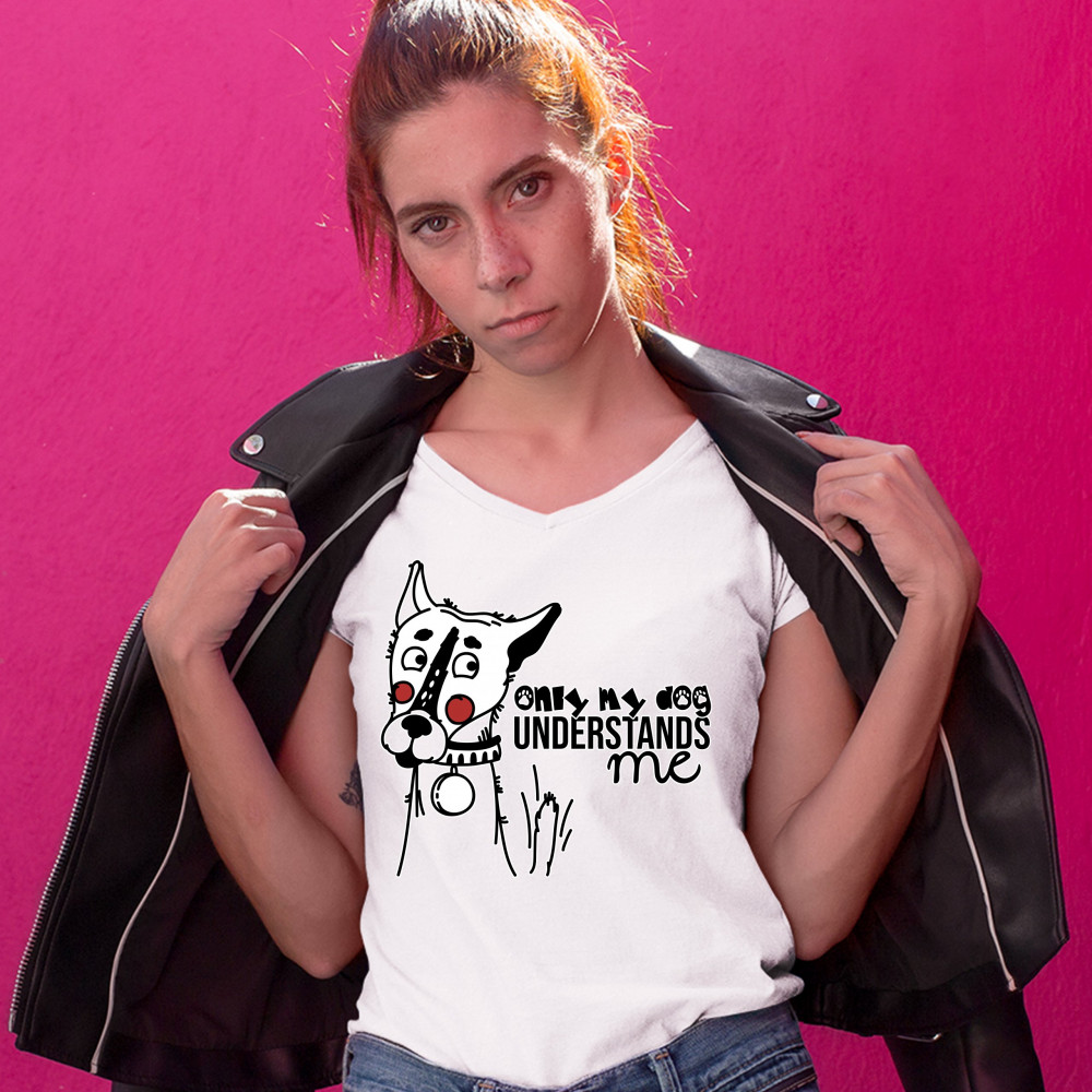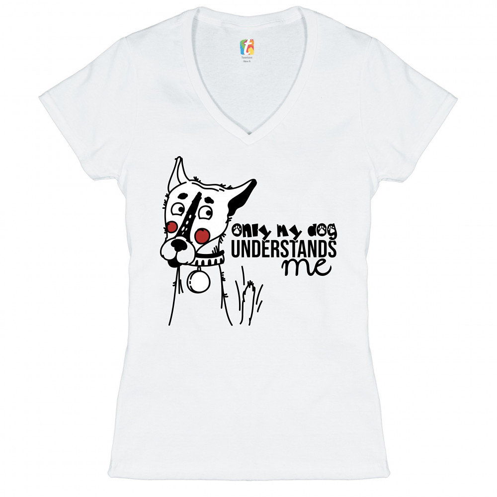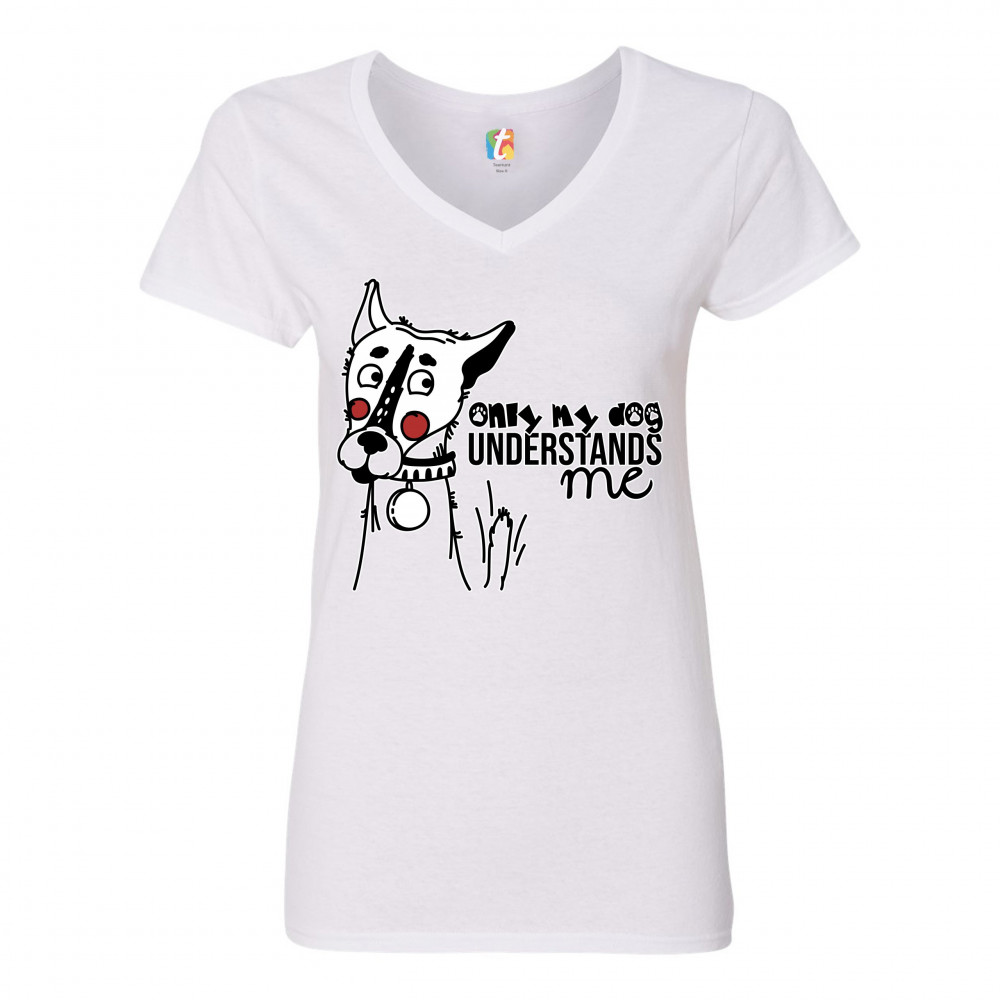 ONLY MY DOG UNDERSTANDS ME women's v-neck t-shirt pet owner i love my dog tee white