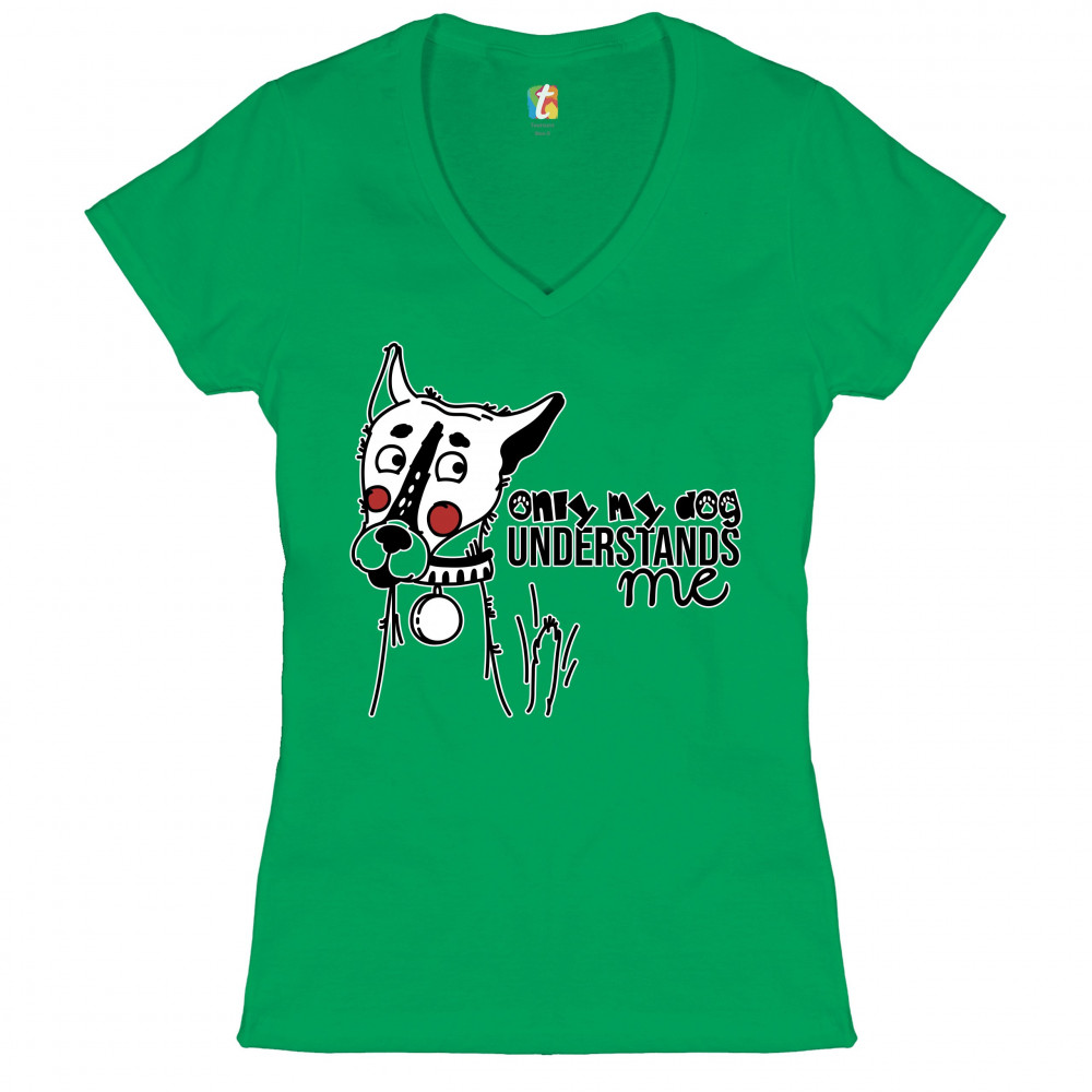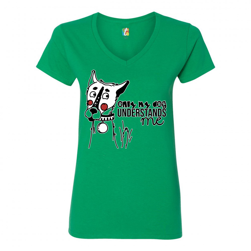 ONLY MY DOG UNDERSTANDS ME women's v-neck t-shirt pet owner i love my dog tee green