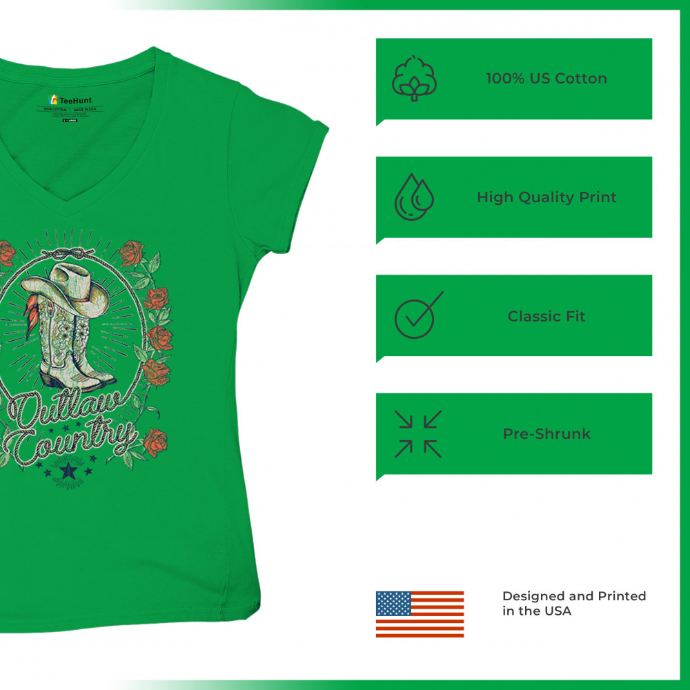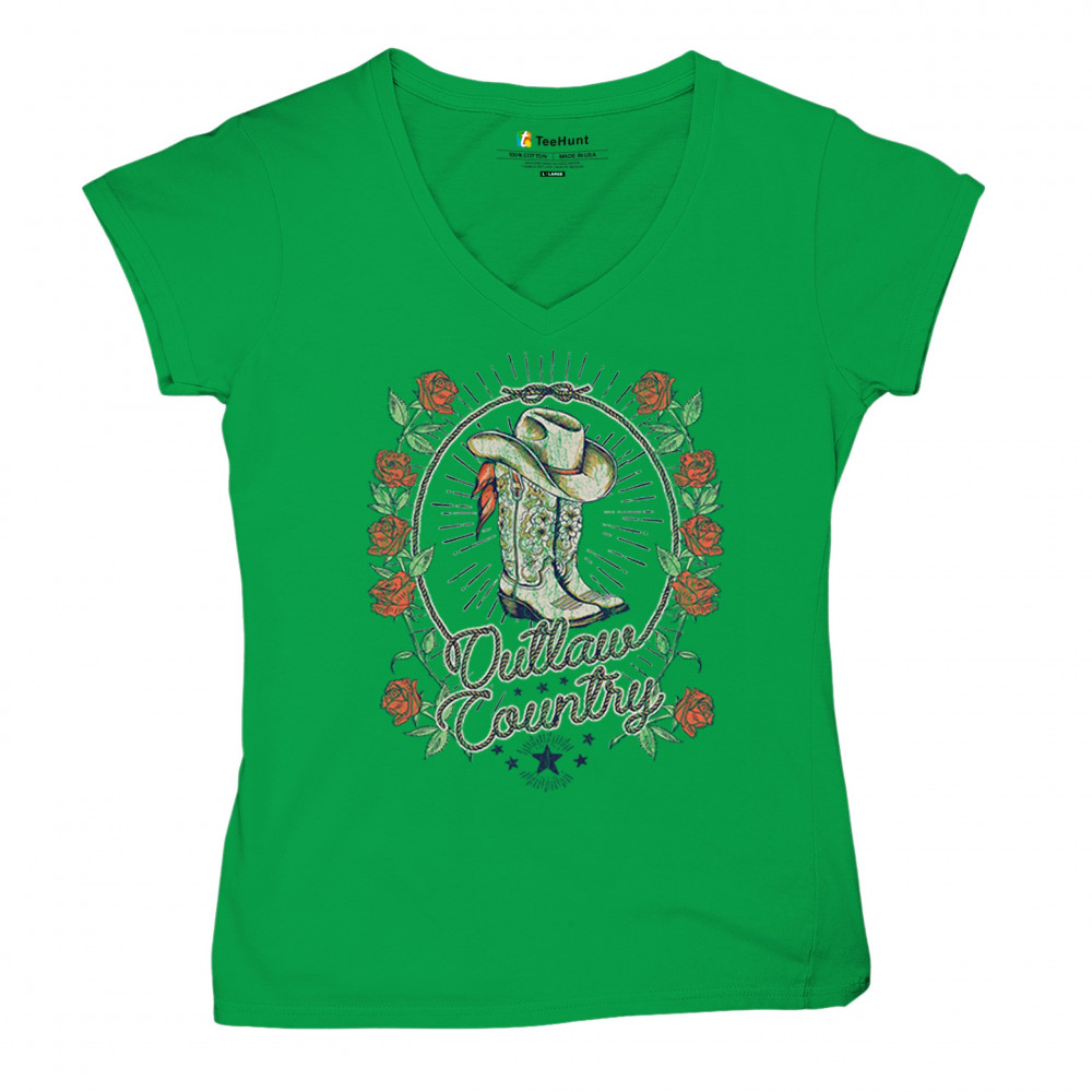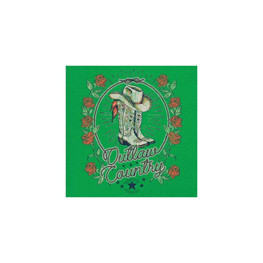 Outlaw country design with cowgirl boots, hat, and roses. Bold feminine western style for concerts, rodeos, and southern lifestyle lovers.