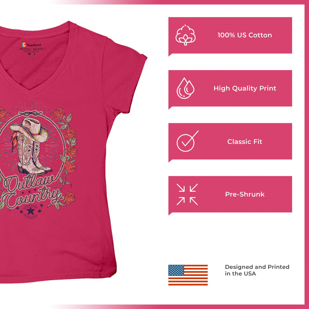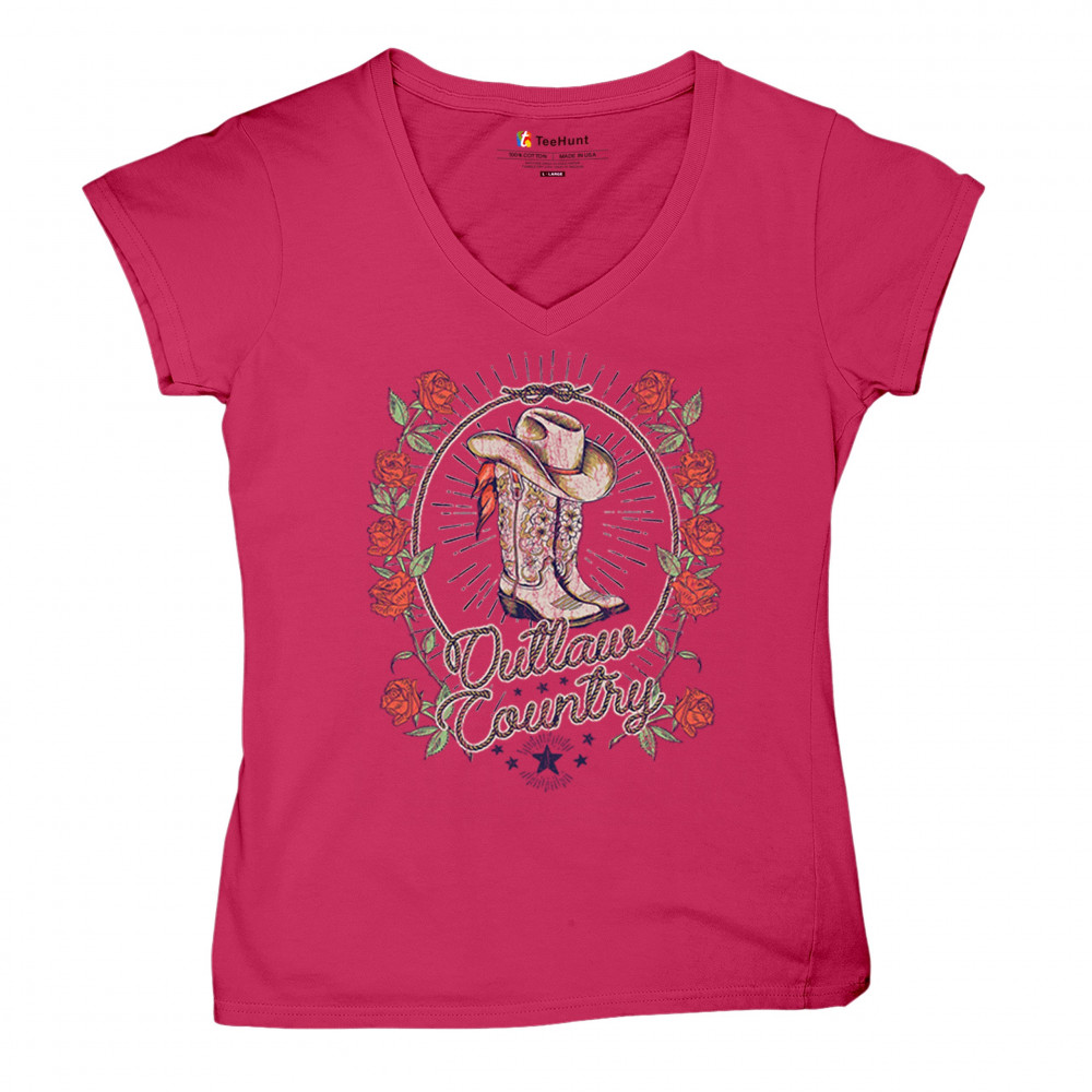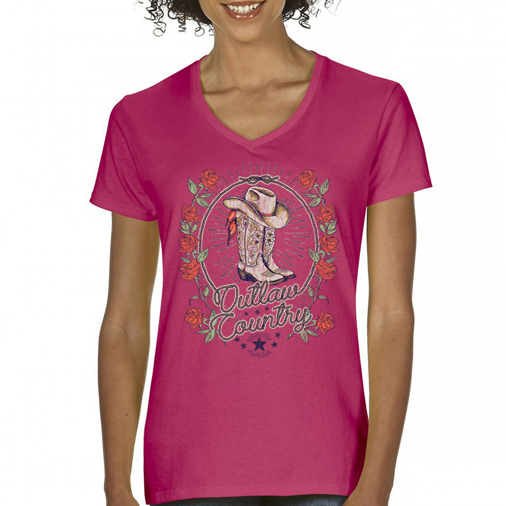 Outlaw country design with cowgirl boots, hat, and roses. Bold feminine western style for concerts, rodeos, and southern lifestyle lovers.