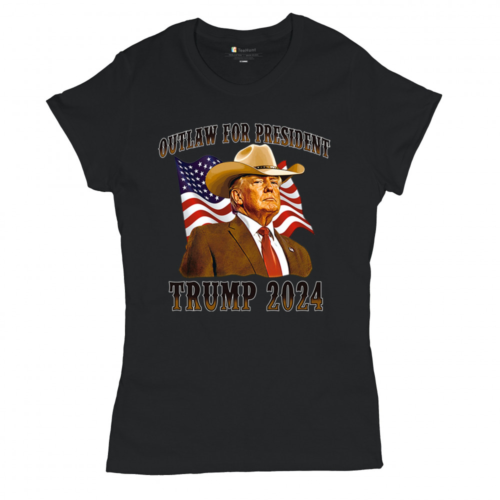 The "Outlaw for President" Trump 2024 design is a powerful symbol of American resilience and conservative pride. Featuring Donald J. Trump in a cowboy hat with the American flag waving behind, this design speaks to supporters who believe in the America First movement, conservative values, and a rebel spirit. Ideal for rallies, patriotic events, and anyone looking to make a bold statement for the 47th President of the United States.