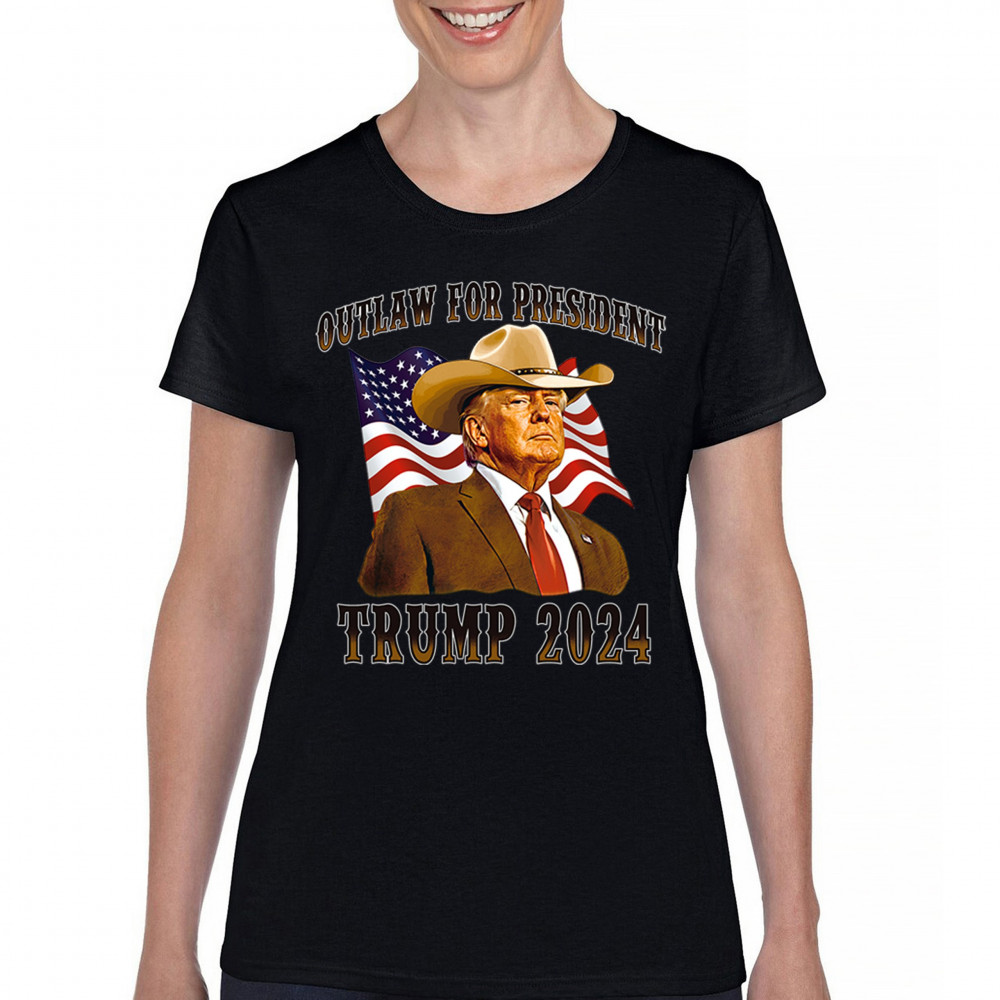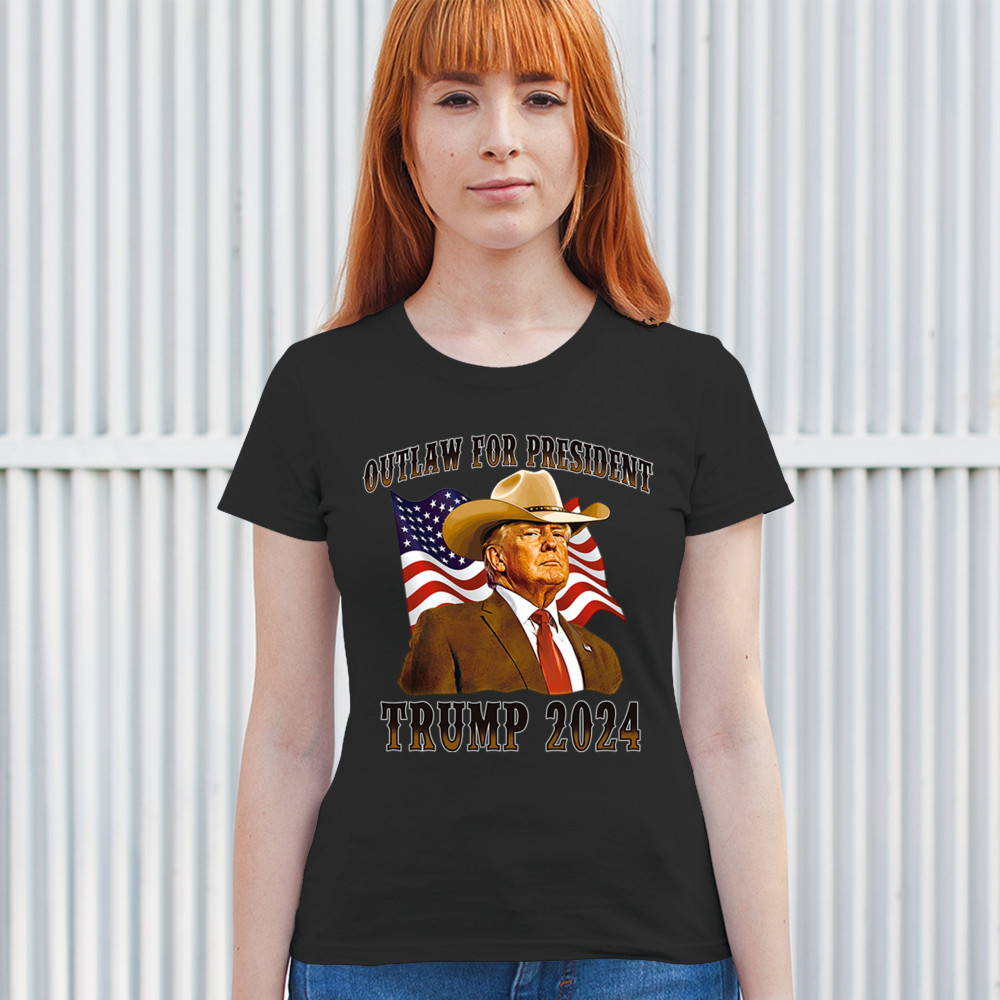 Bold "Outlaw for President" Trump 2024 design for conservative supporters, featuring Donald J. Trump and the American flag. Show your patriotism.
