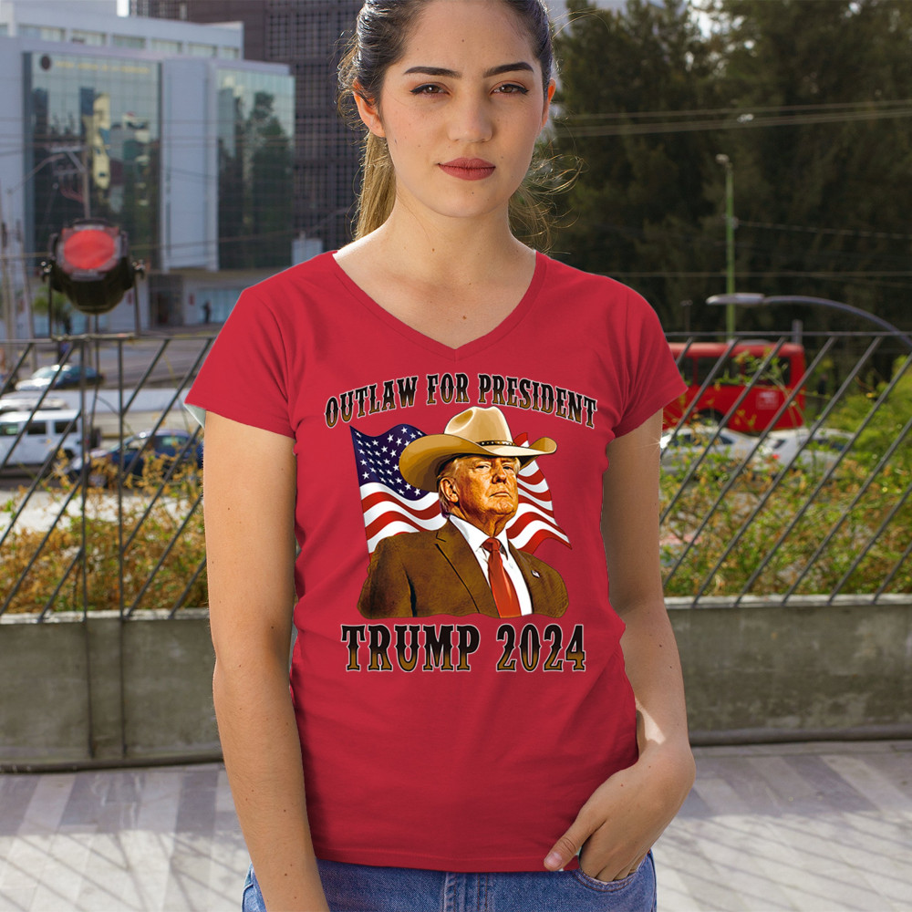 Bold "Outlaw for President" Trump 2024 design for conservative supporters, featuring Donald J. Trump and the American flag. Show your patriotism.