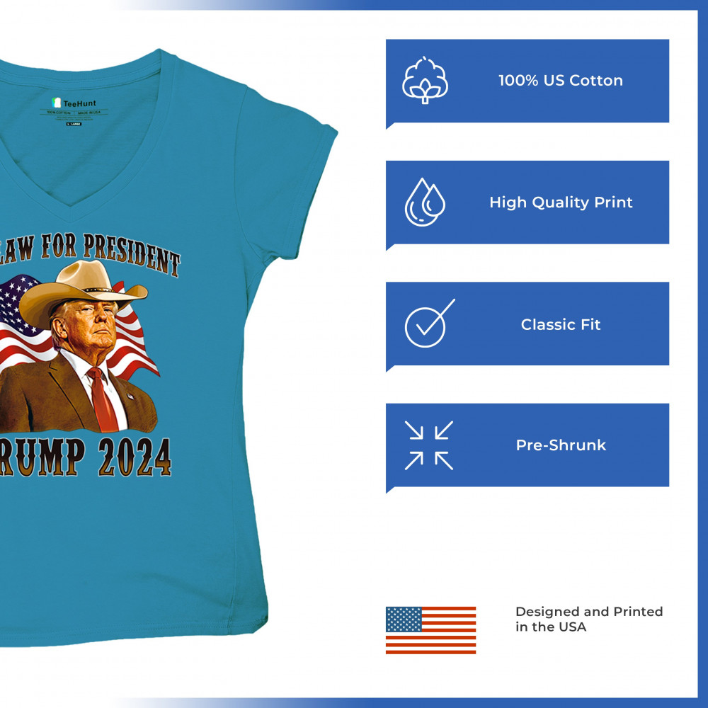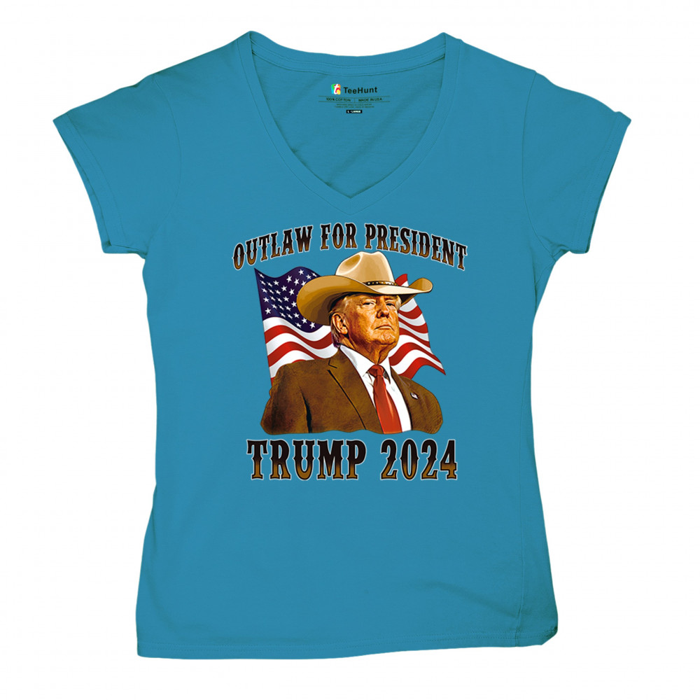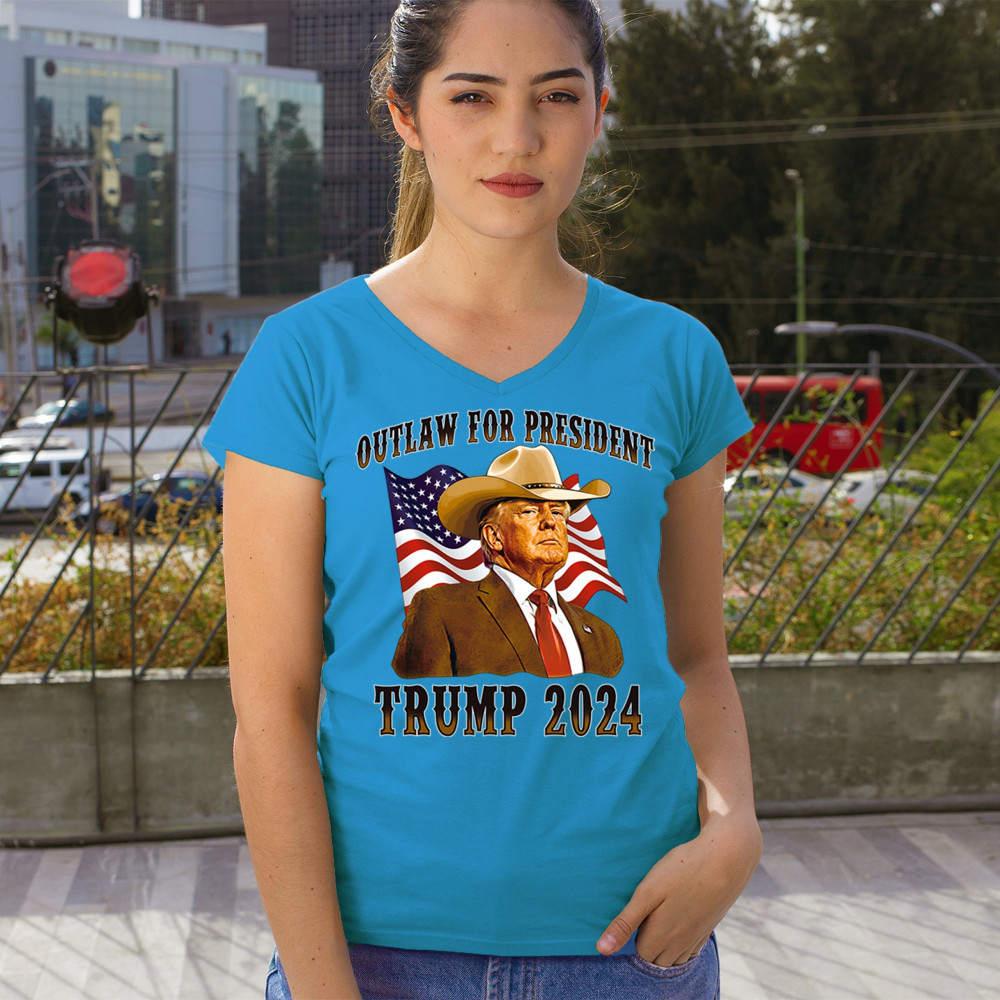 Bold "Outlaw for President" Trump 2024 design for conservative supporters, featuring Donald J. Trump and the American flag. Show your patriotism.