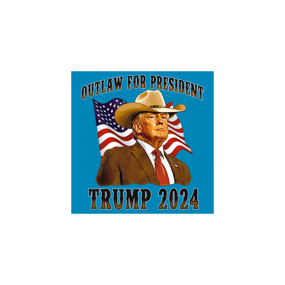 The "Outlaw for President" Trump 2024 design is a powerful symbol of American resilience and conservative pride. Featuring Donald J. Trump in a cowboy hat with the American flag waving behind, this design speaks to supporters who believe in the America First movement, conservative values, and a rebel spirit. Ideal for rallies, patriotic events, and anyone looking to make a bold statement for the 47th President of the United States.