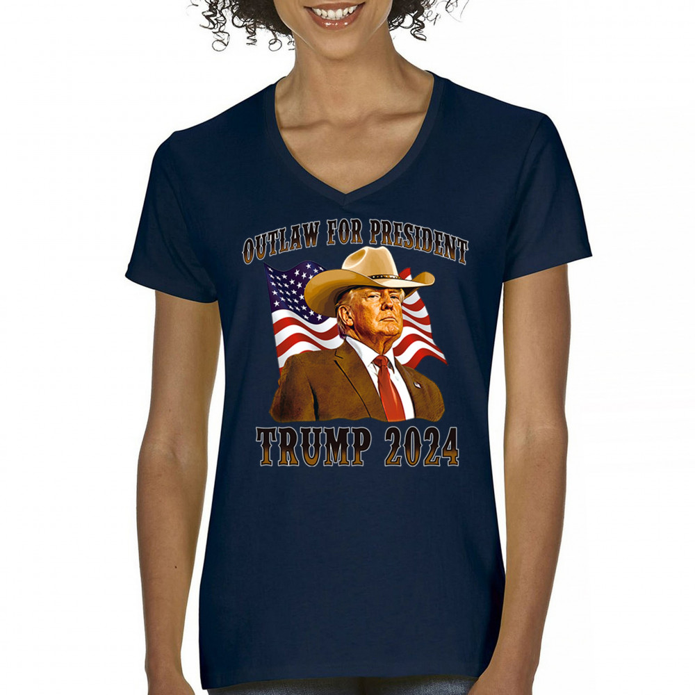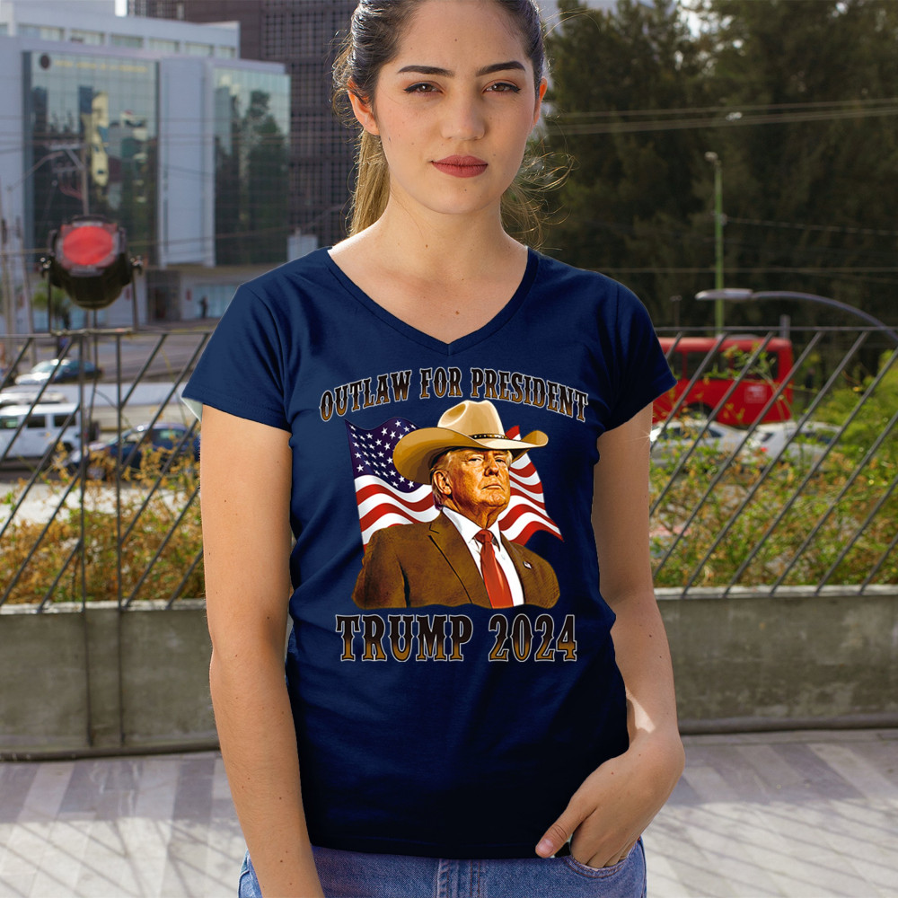 Bold "Outlaw for President" Trump 2024 design for conservative supporters, featuring Donald J. Trump and the American flag. Show your patriotism.