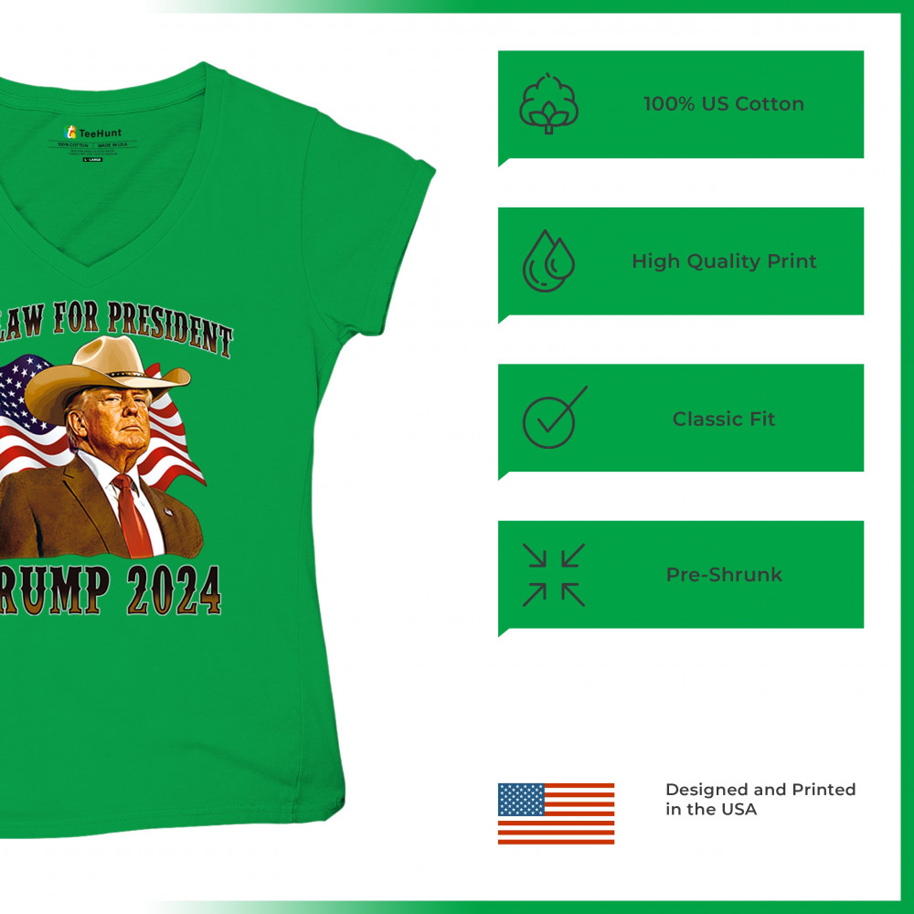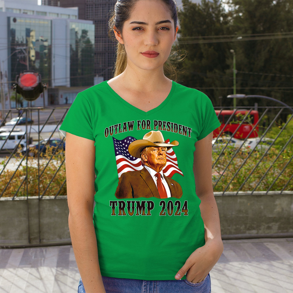 Bold "Outlaw for President" Trump 2024 design for conservative supporters, featuring Donald J. Trump and the American flag. Show your patriotism.