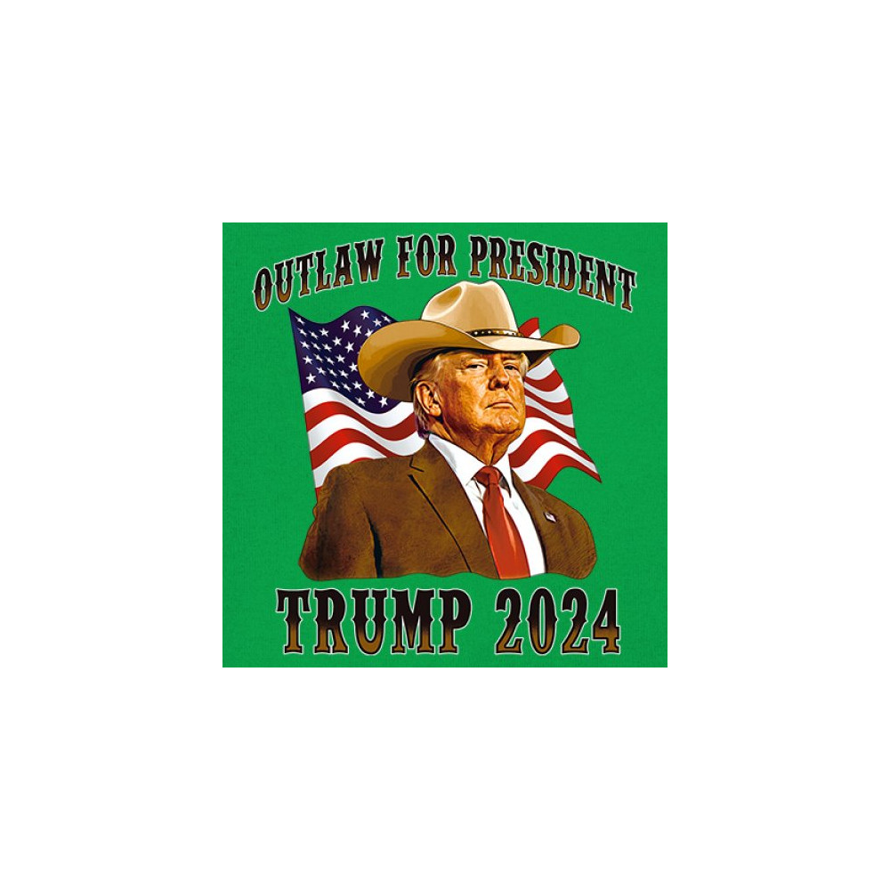 The "Outlaw for President" Trump 2024 design is a powerful symbol of American resilience and conservative pride. Featuring Donald J. Trump in a cowboy hat with the American flag waving behind, this design speaks to supporters who believe in the America First movement, conservative values, and a rebel spirit. Ideal for rallies, patriotic events, and anyone looking to make a bold statement for the 47th President of the United States.