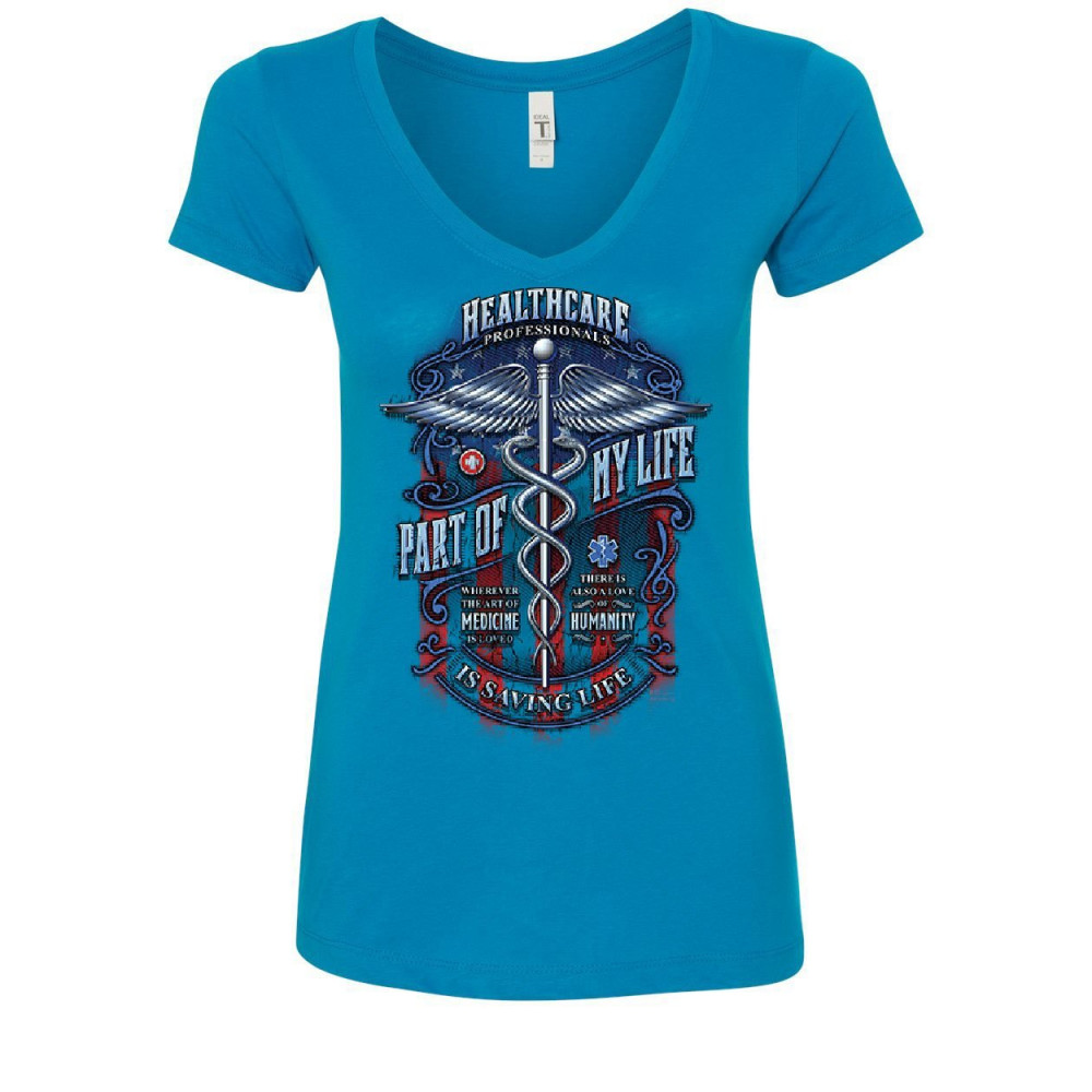 PART OF MY LIFE IS SAVING LIFE women's v-neck t-shirt nurse doctor emt medic turquoise