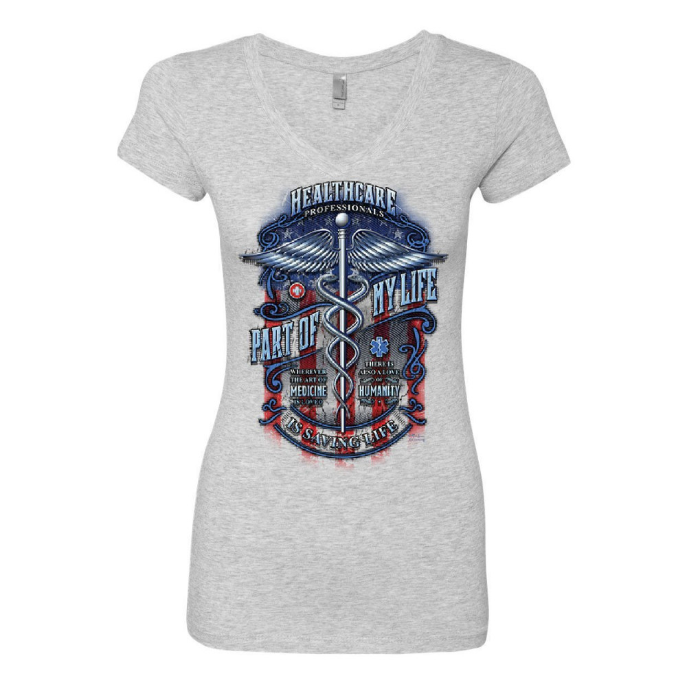 PART OF MY LIFE IS SAVING LIFE women's v-neck t-shirt nurse doctor emt medic gray