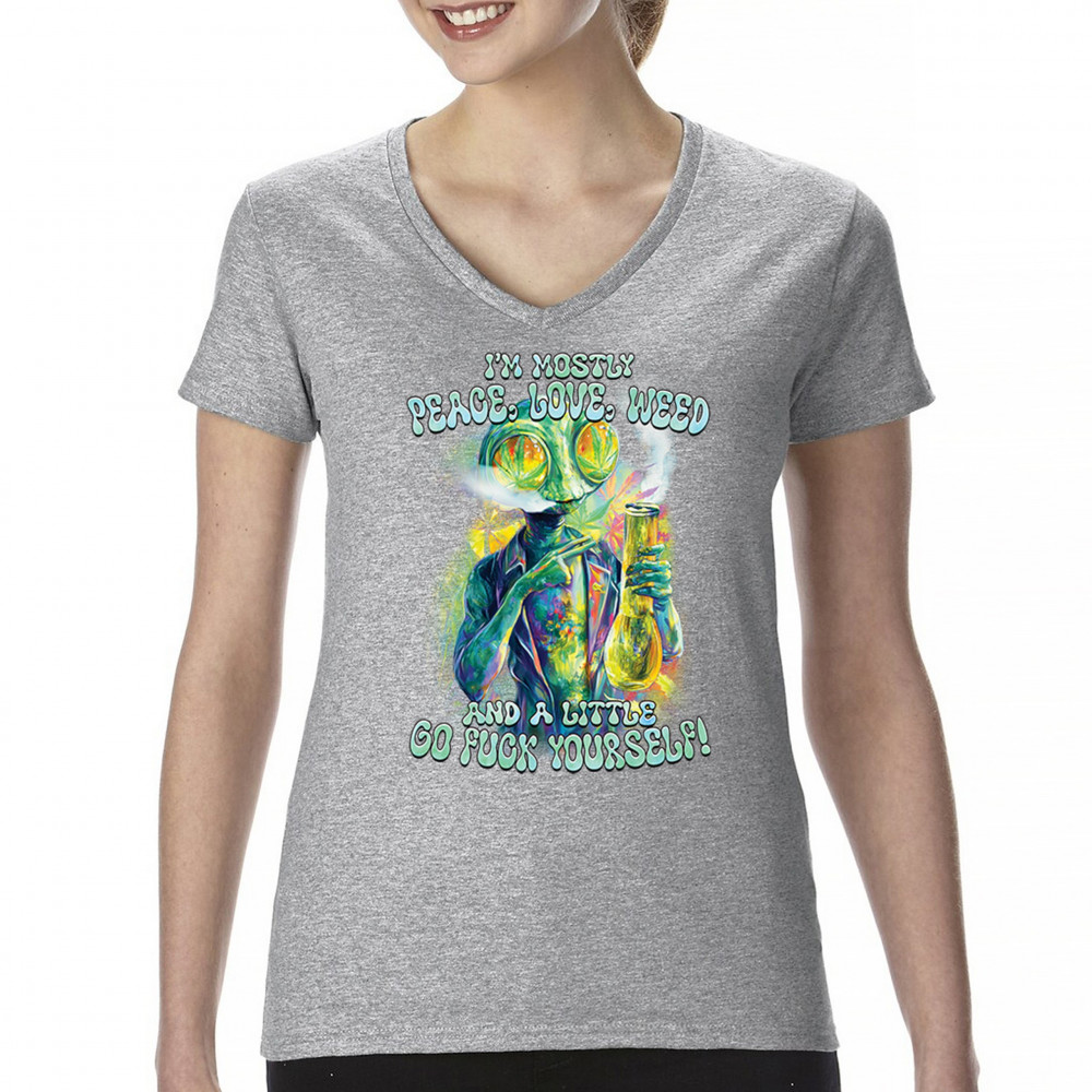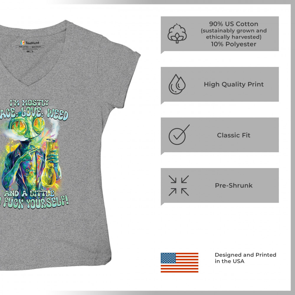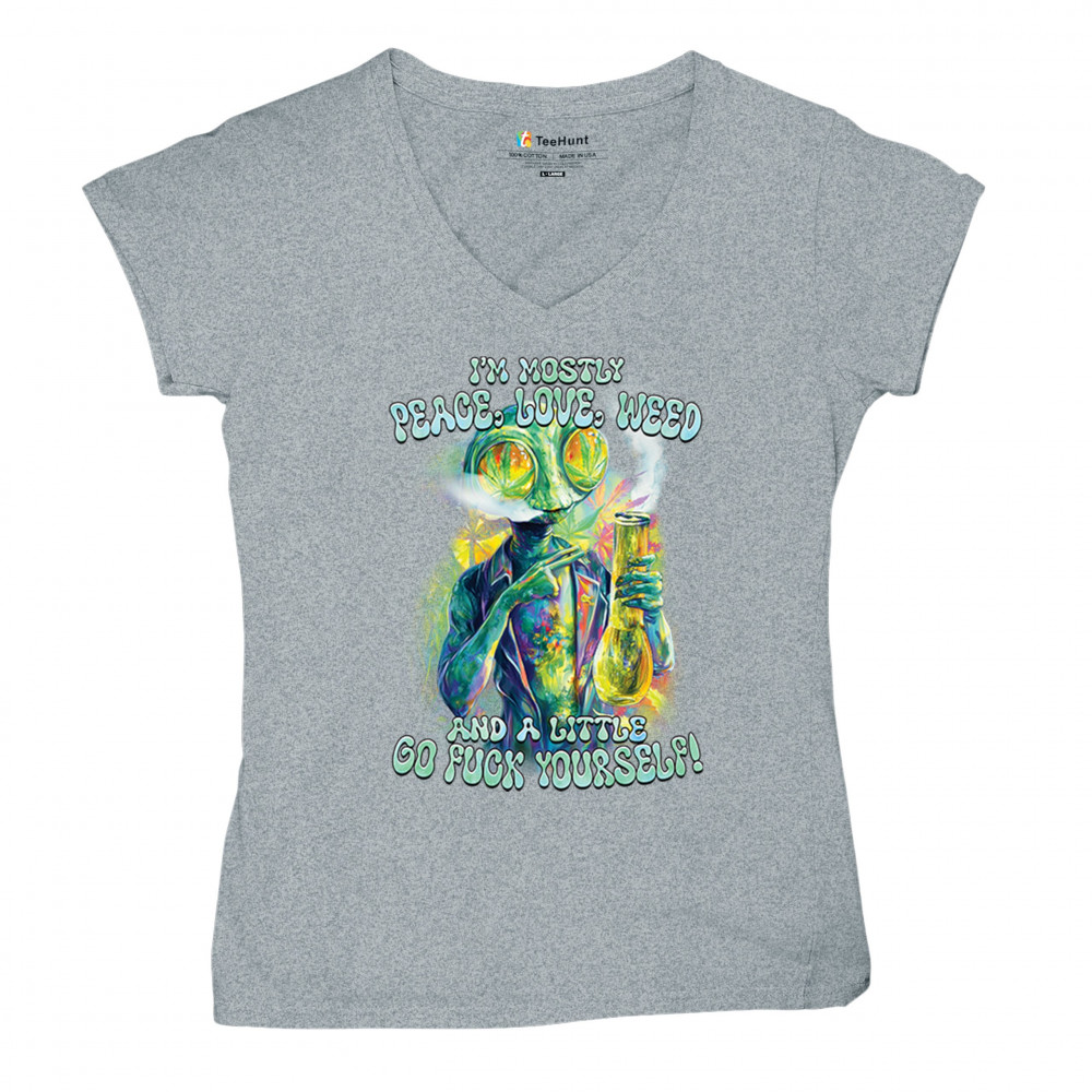 Bold alien cannabis design mixing humor, sarcasm, and weed culture—perfect for unapologetic smokers with attitude and peace vibes.
