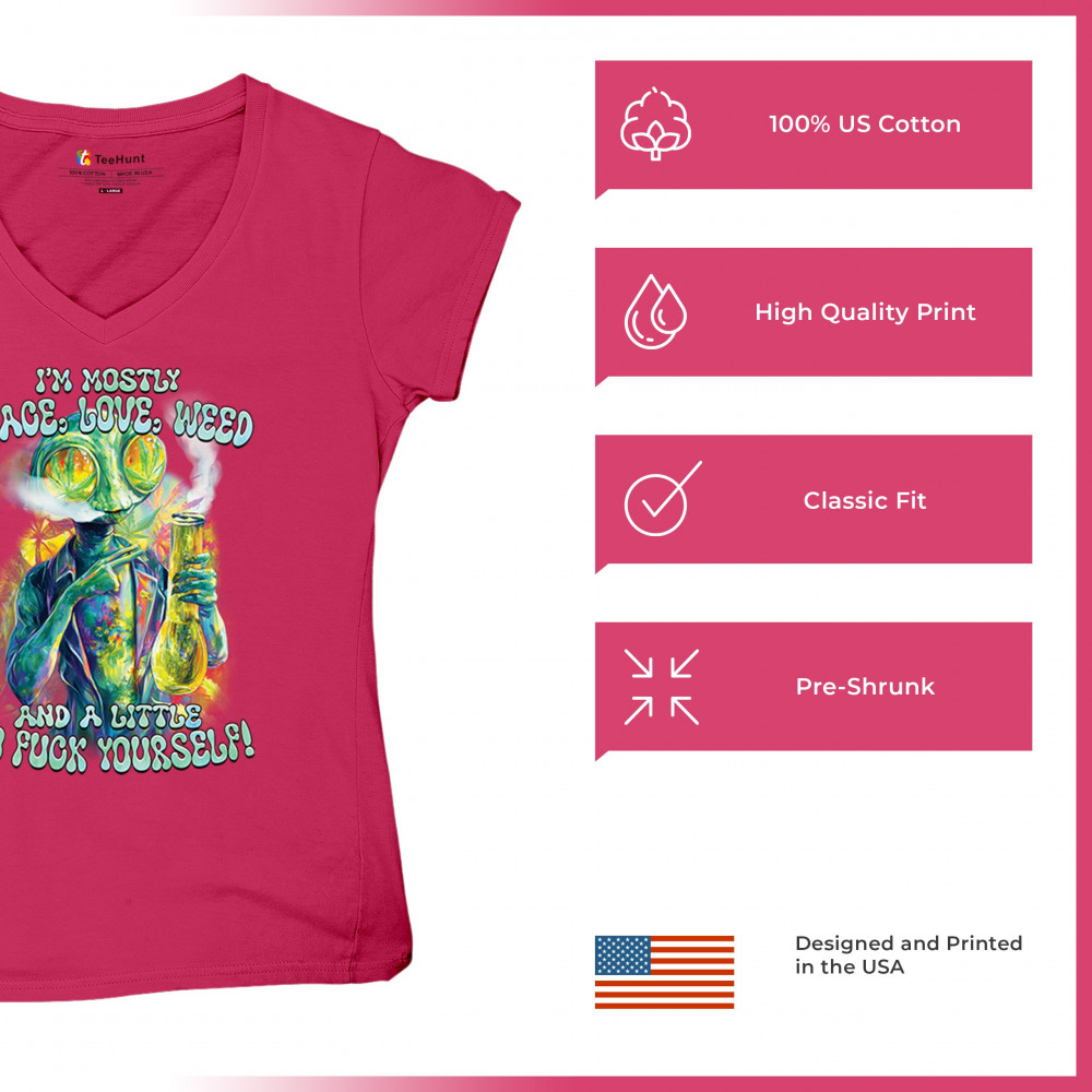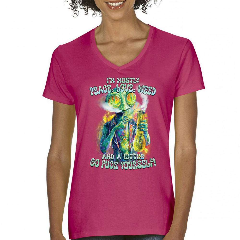 Bold alien cannabis design mixing humor, sarcasm, and weed culture—perfect for unapologetic smokers with attitude and peace vibes.